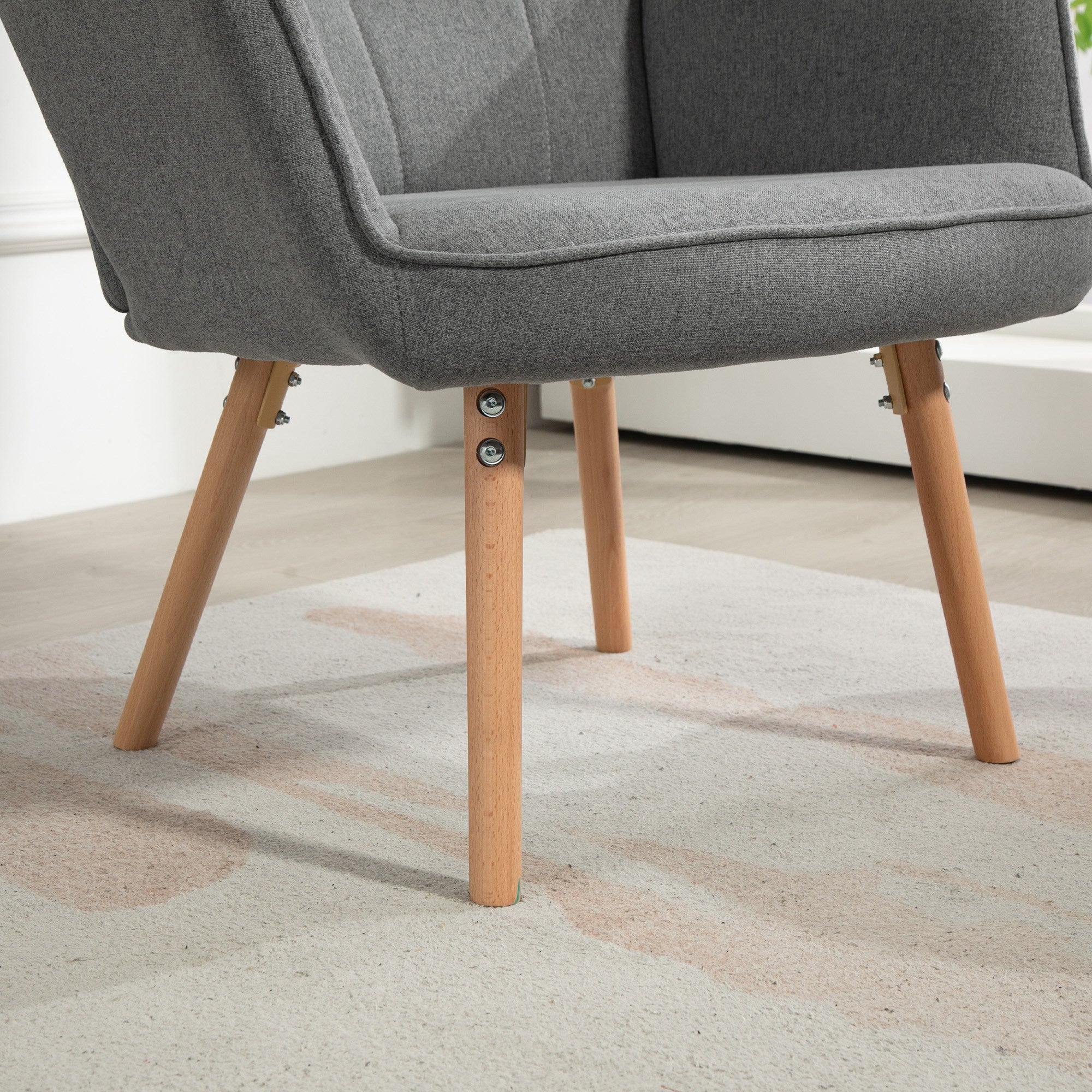 Poltrona Moderna – 71x76x101 cm – Cinzento – Linho e Madeira de Haya