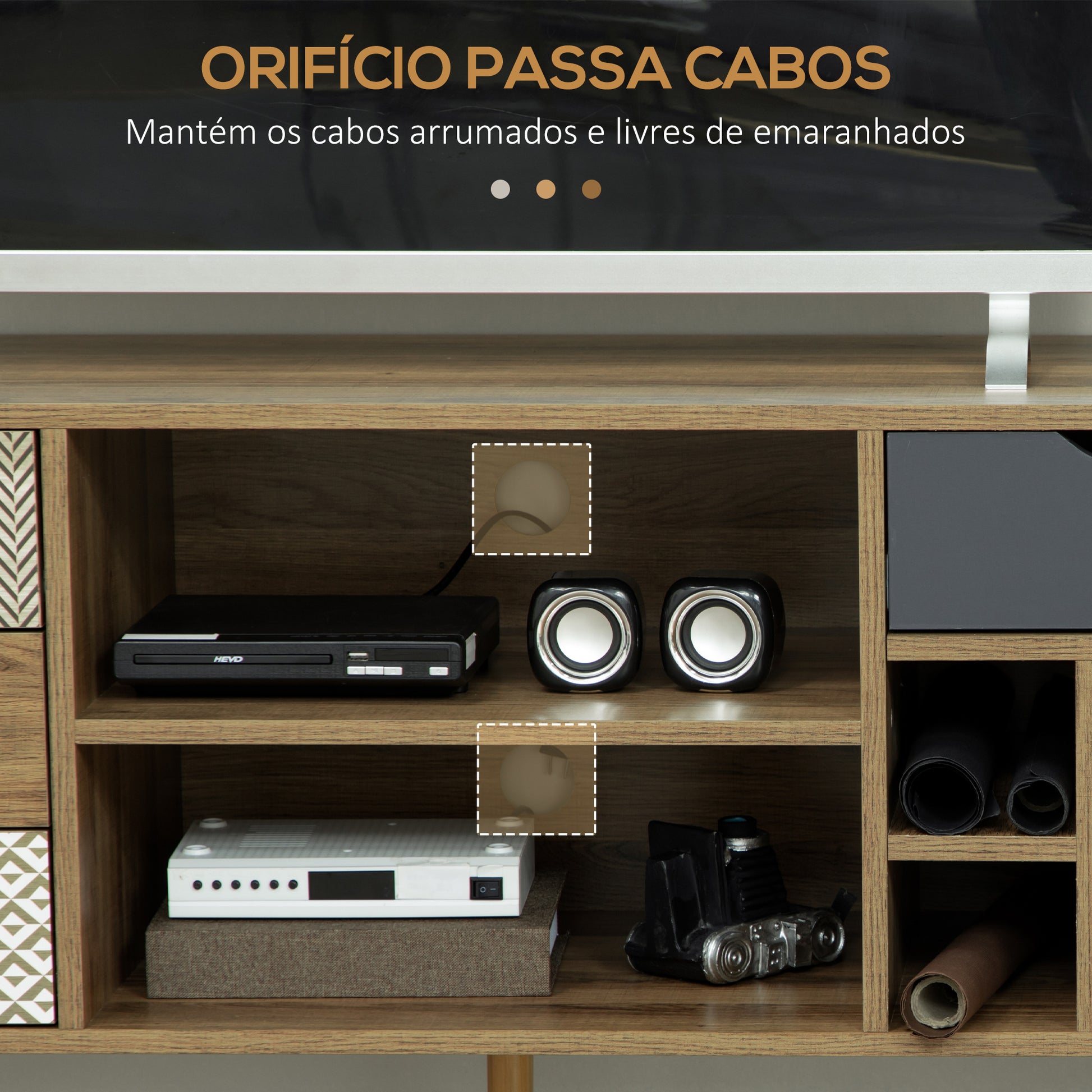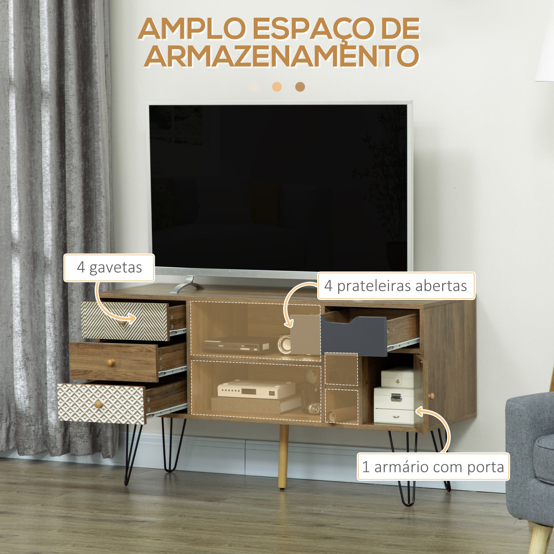 Móvel de TV com Prateleira de Armazenamento 4 Gavetas e Pés de Metal 120x39x64cm Marrom