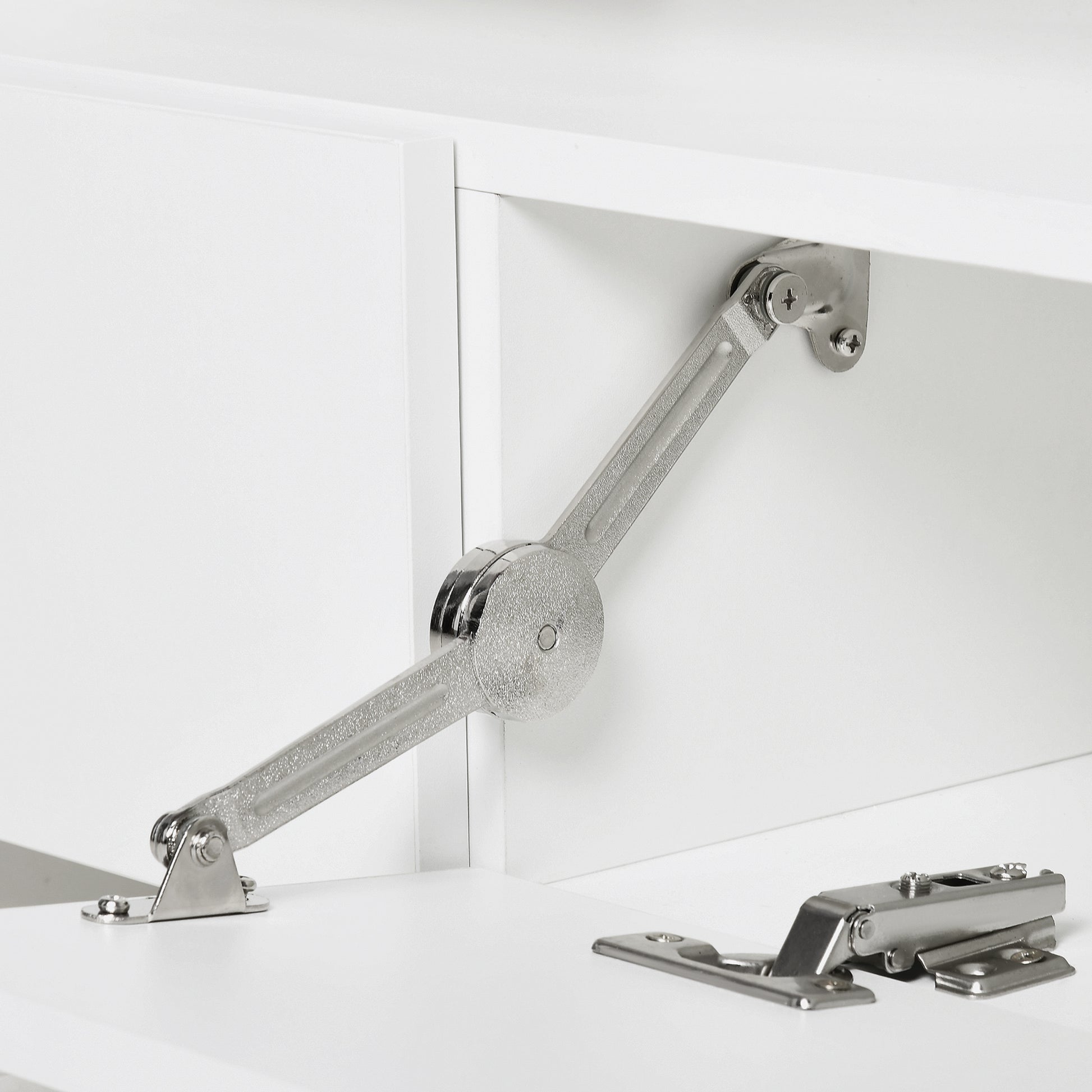 - Benefícios: Amplo espaço de armazenamento, dois armários com porta basculante, prateleiras de parede para maximizar o uso do espaço