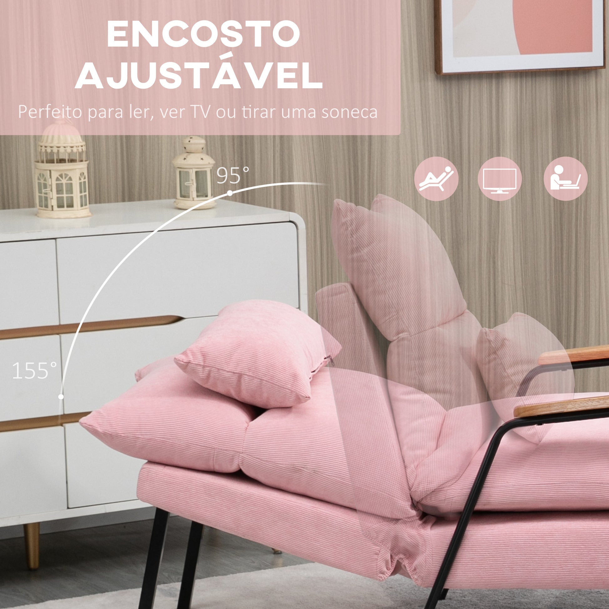 Poltrona Relax – 68x91,5x88cm – Rosa – Tecido de veludo cotelê