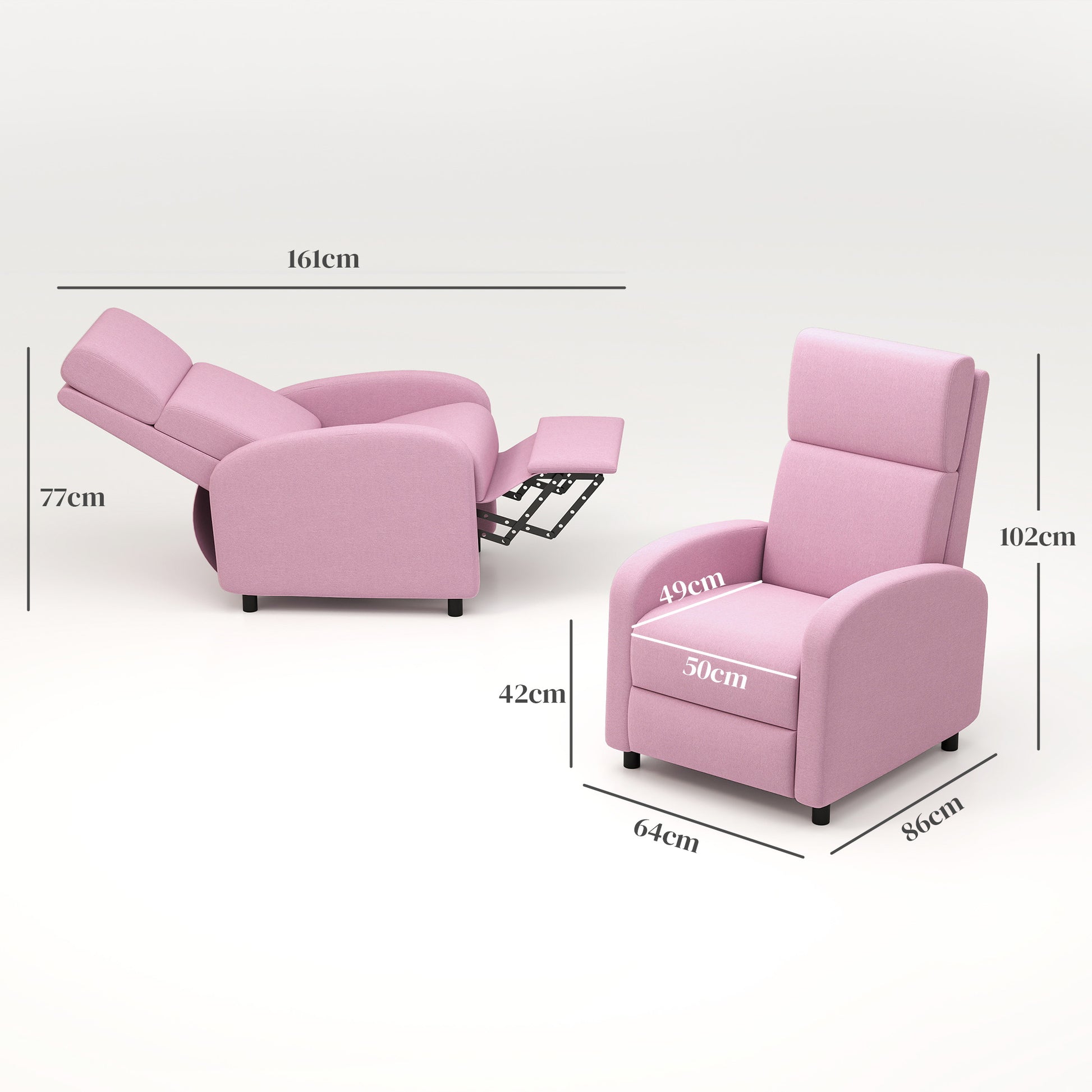 Poltrona Relax Reclinável 160° – 64x86x102 cm – Rosa – Tecido de linho