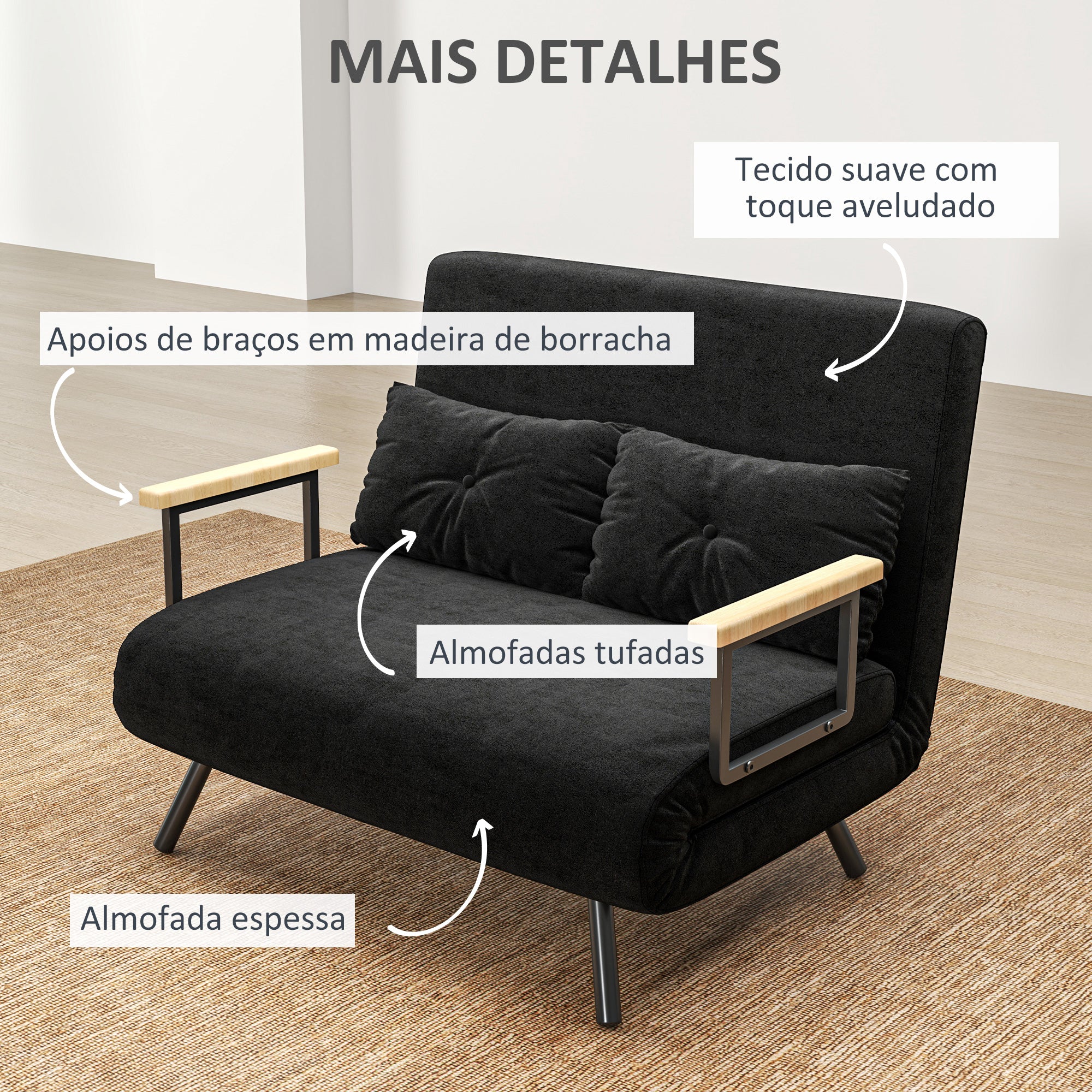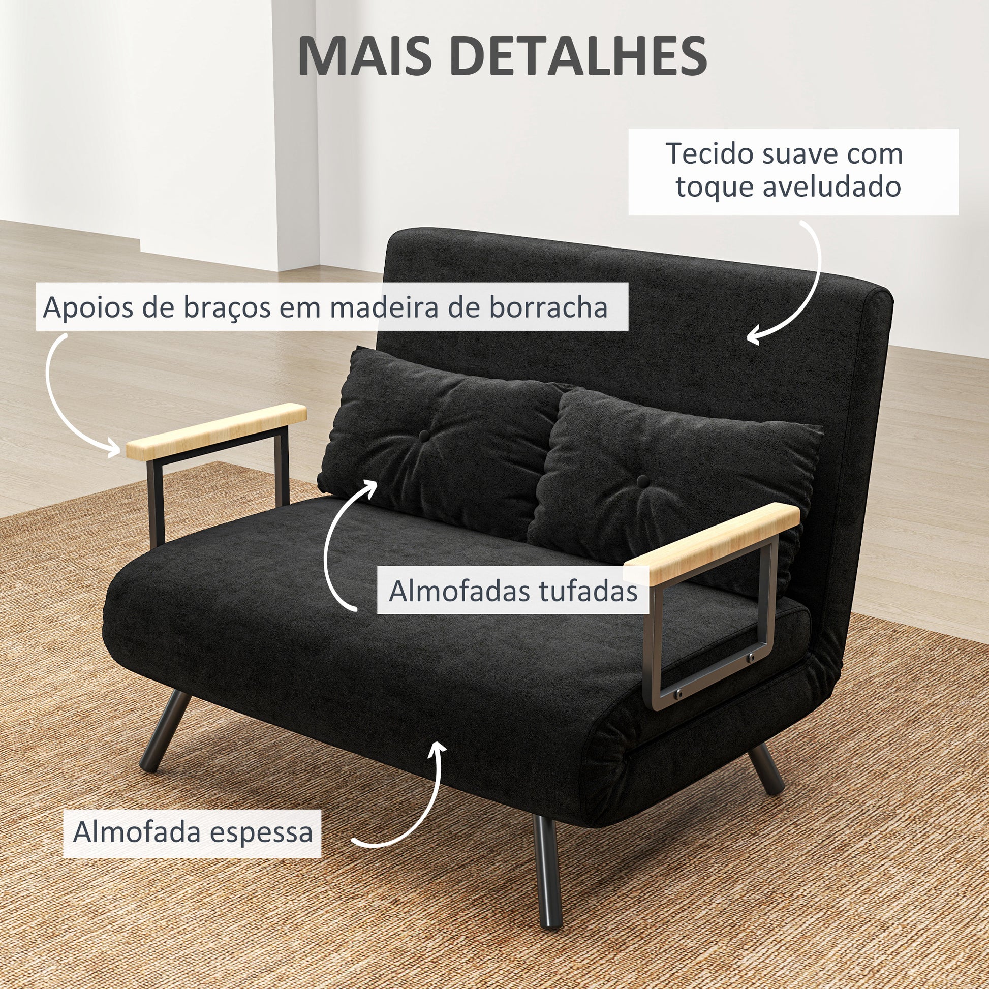 Sofá Cama Convertível em Cama de 2 Lugares 102x73x81 cm Preto