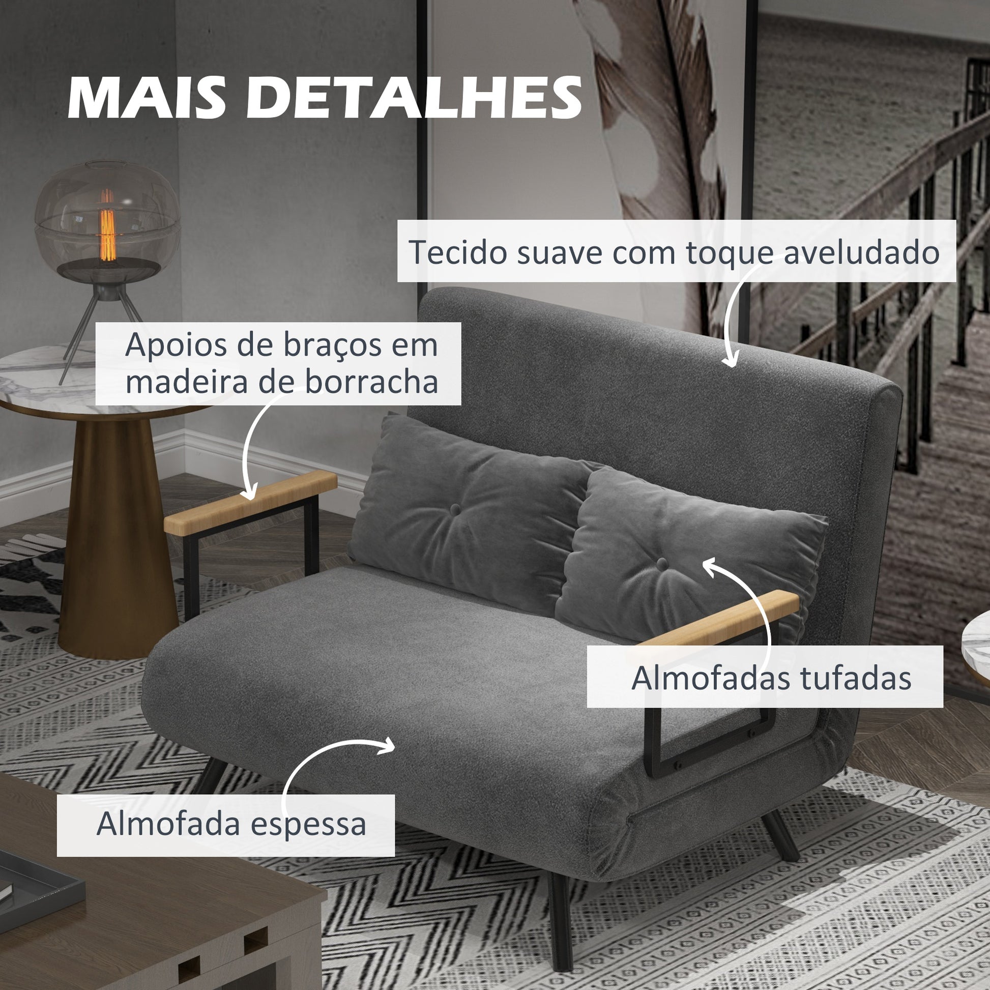 Sofá Cama Convertível – 102x73x81 cm – Cinzento – Aço, espuma, veludo (100% poliéster) e madeira de borracha