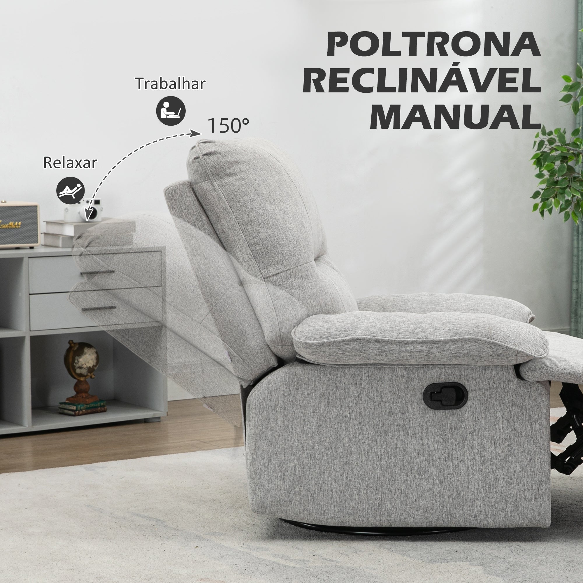 Poltrona Reclinável – 89x98x101 cm – Cinza Claro – Tecido de linho