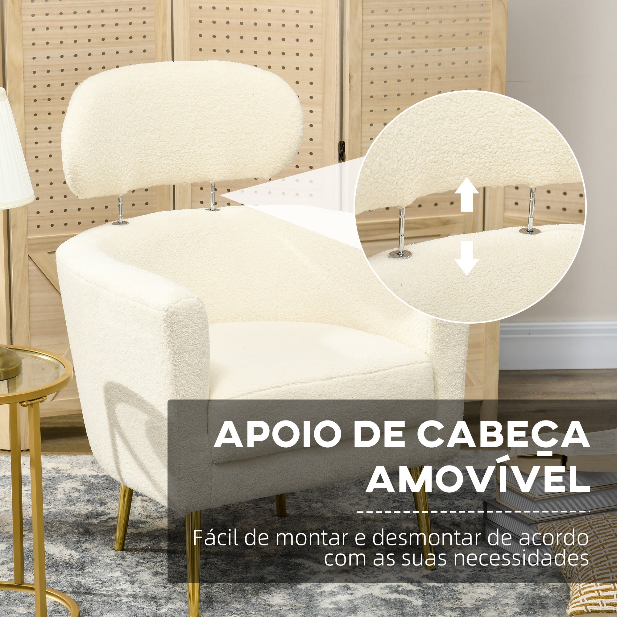 Poltrona Estofada Individual – 71x65x90 cm – Creme – Madeira de Eucalipto, Lã