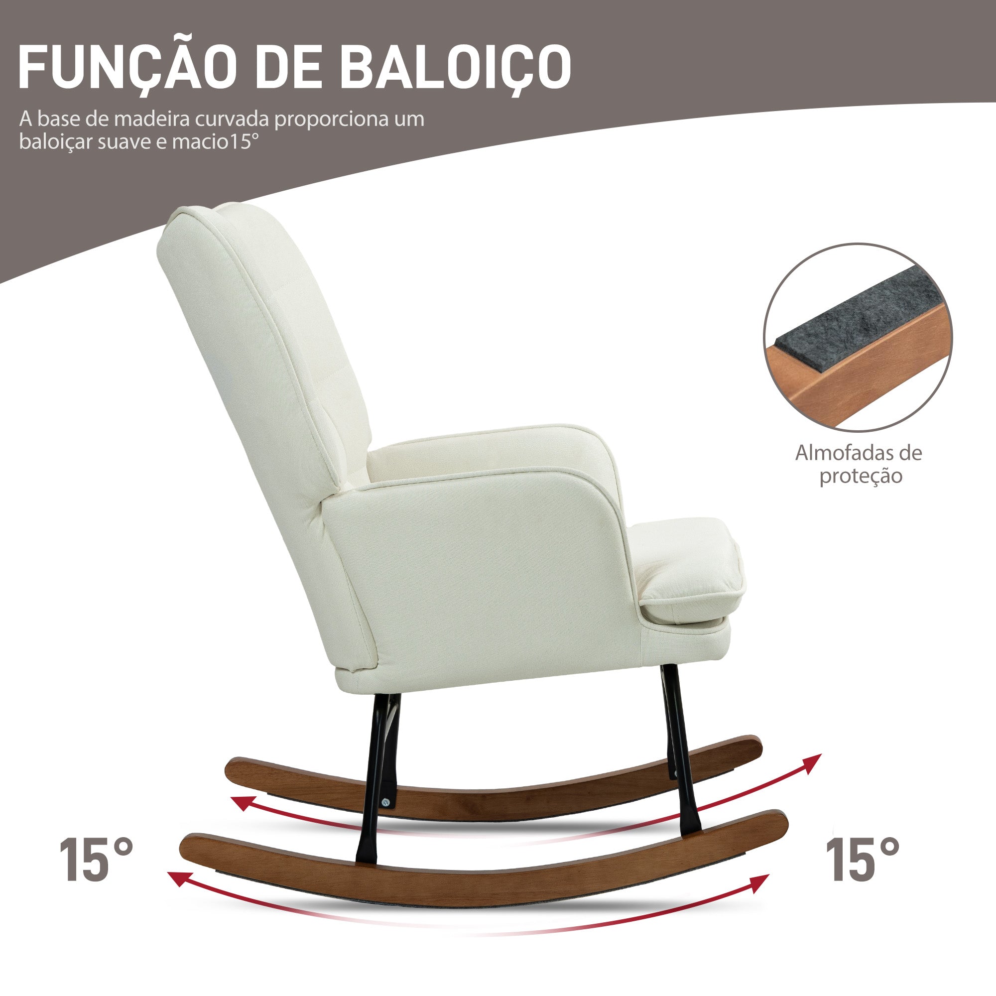 - Benefícios: Encosto alto e suavemente inclinado, acolchoamento espesso para conforto, apoio para os pés correspondente, pernas curvas de madeira para balançar suavemente