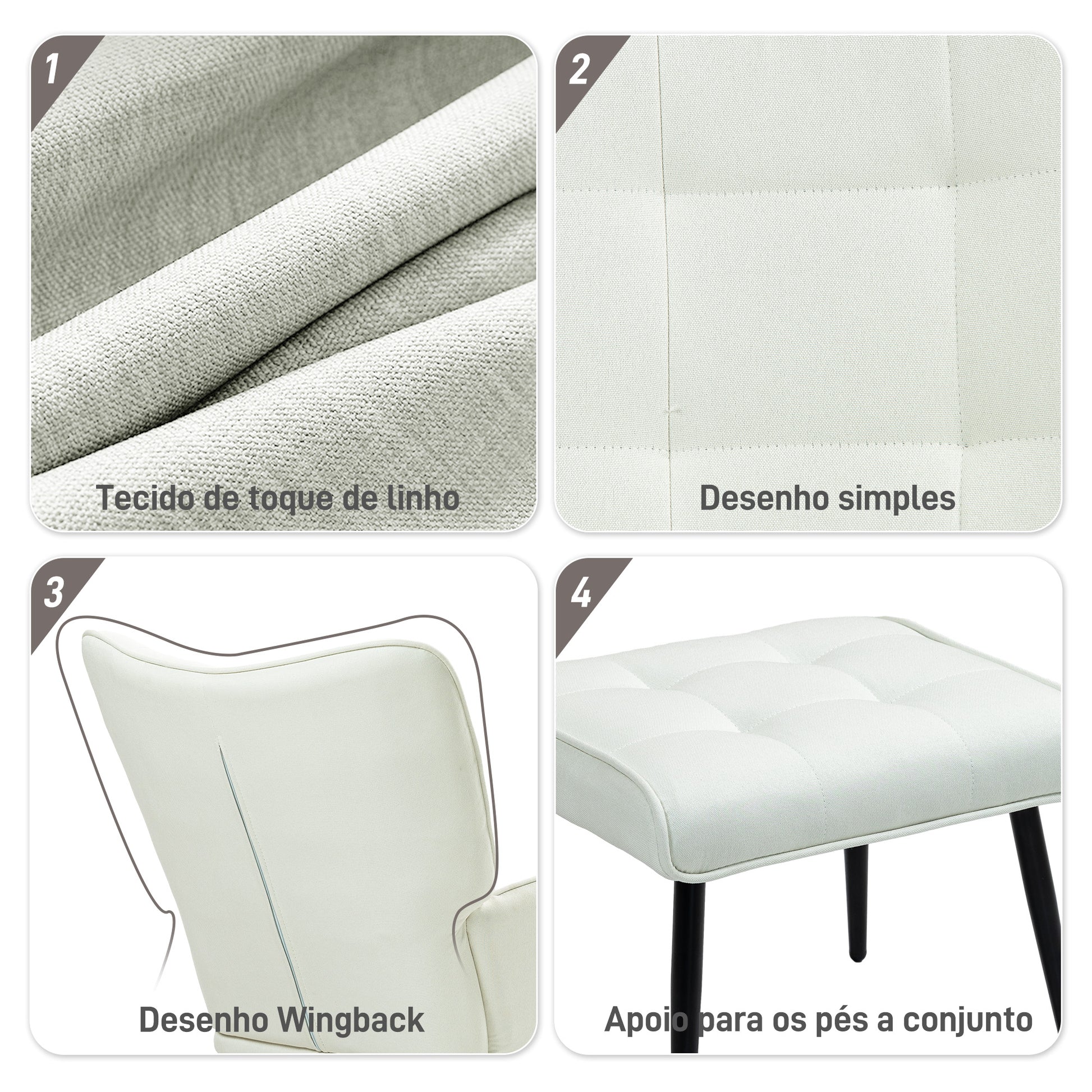 - Materiais: Linho sintético (100% poliéster), espuma, aço e madeira de faia