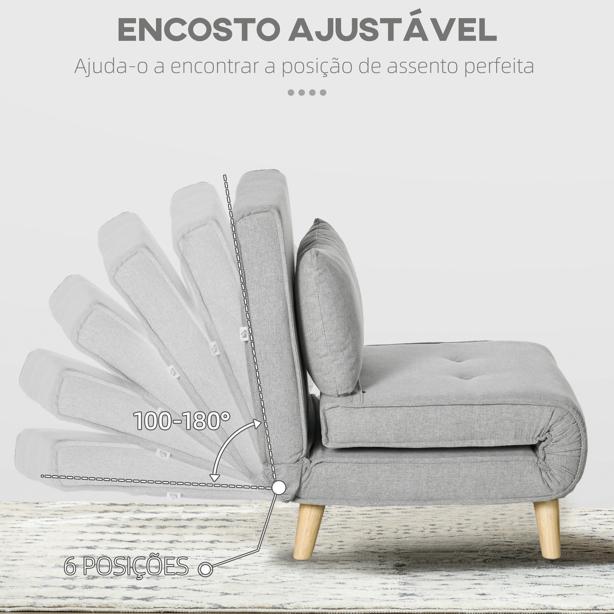 Aproveite o máximo conforto desta poltrona cama com encosto reclinável, perfeita para relaxar, ler ou assistir TV. Requer montagem simples e suporta até 150 kg de peso.