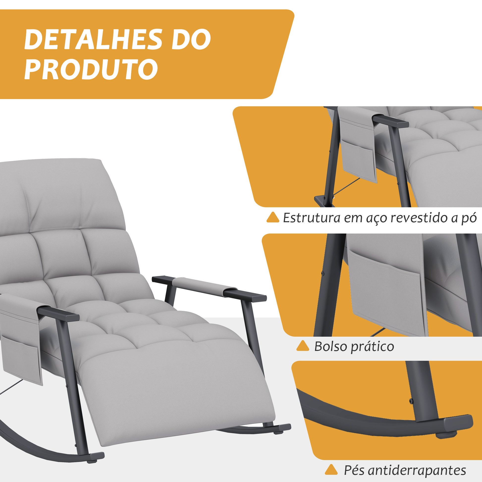 Não espere mais para descobrir o conforto desta poltrona baloiço cinzenta, o seu novo refúgio em casa. Aproveite a liberdade de ajustar os ângulos do apoio para os pés e do encosto para uma experiência de relaxamento personalizável. Feita com materiais de qualidade e com um design elegante, esta poltrona é perfeita para momentos de descanso e lazer.