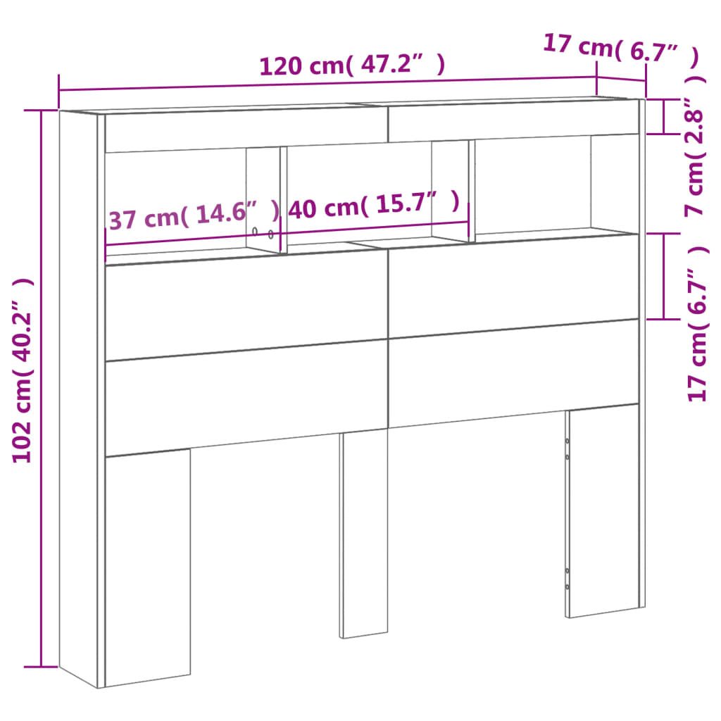 Armário de cabeceira c/ luzes LED 120x17x102 cm cinzento sonoma