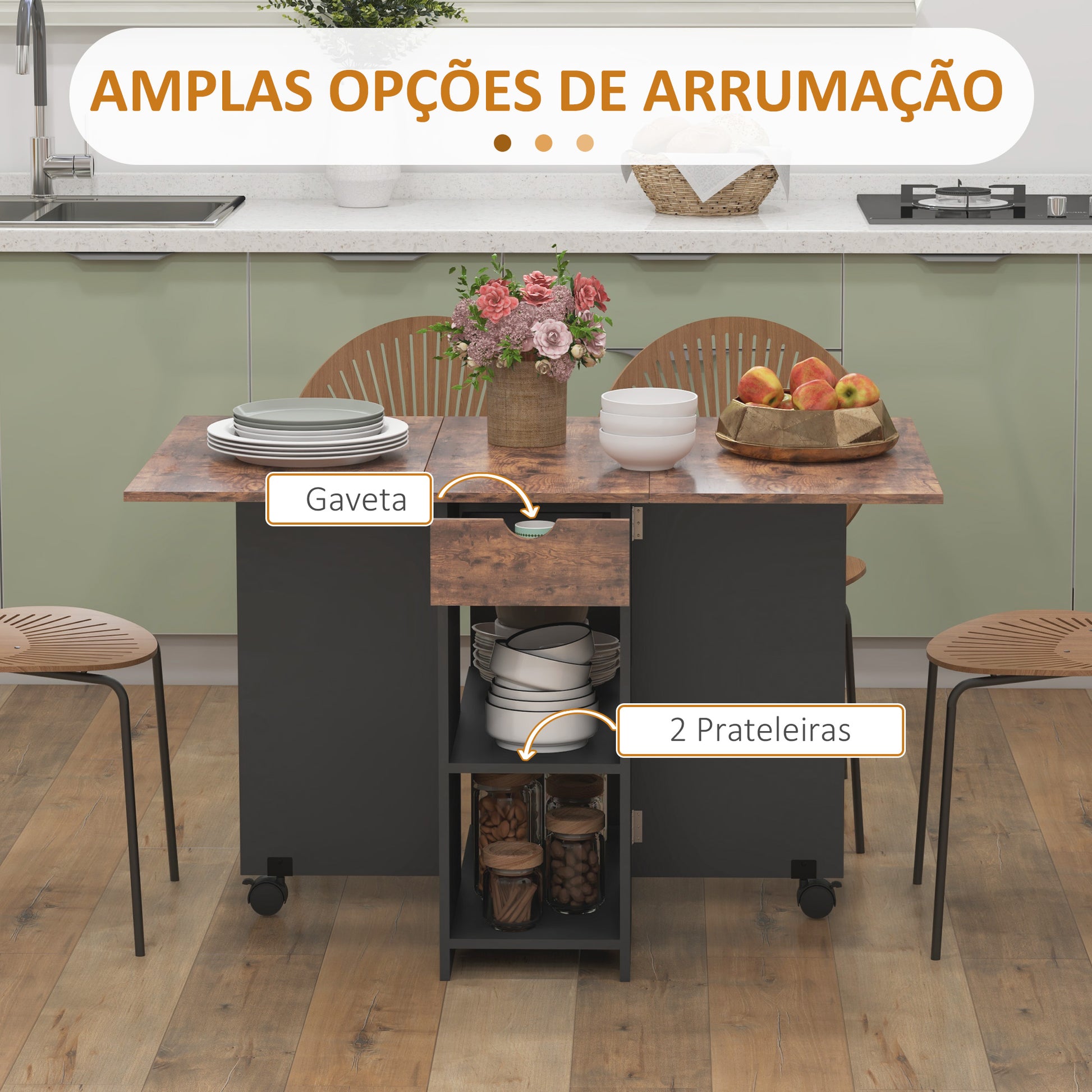 Traga mais conforto e funcionalidade para a sua cozinha com esta mesa dobrável de design moderno em tons de marrom rústico e preto.