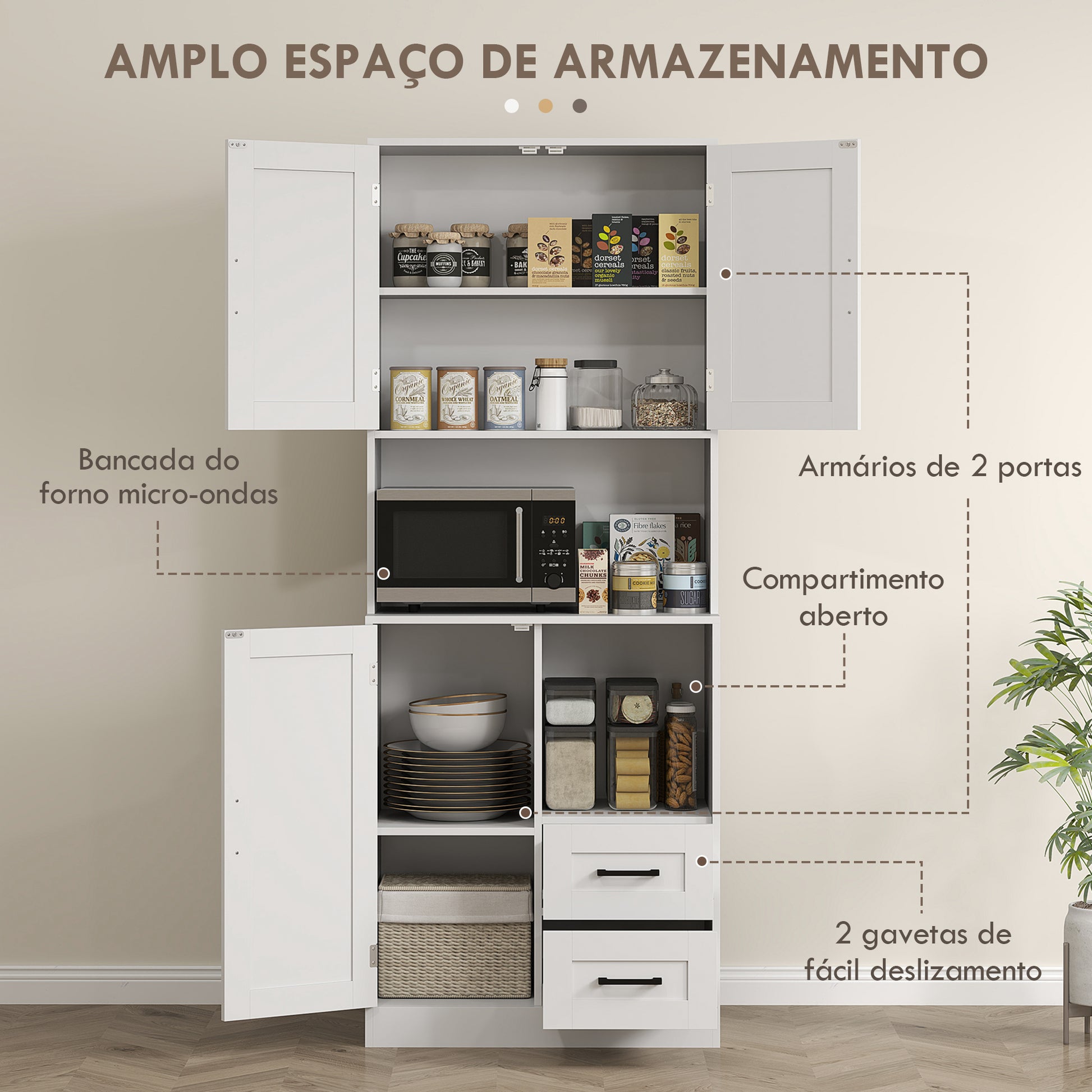 Armário de Cozinha Rústico – 70x40x180 cm – Branco – Melamina de madeira