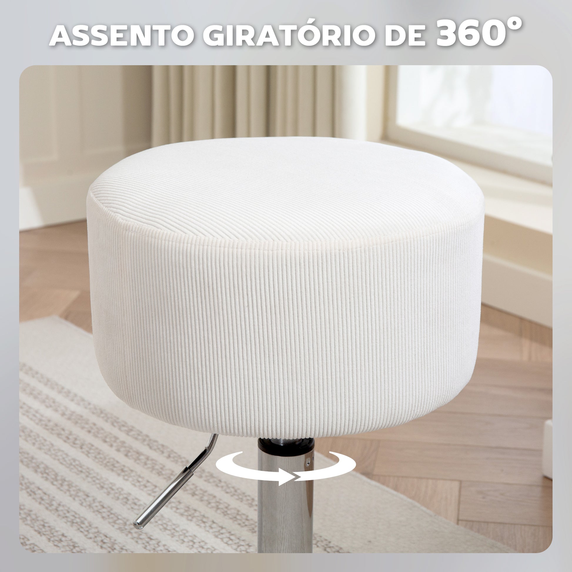 Desfrute de conforto e versatilidade com o Banco de Bar Giratório Branco. Com superfície de veludo macia, altura ajustável entre 52 cm e 66 cm e assento acolchoado de espuma, este banco é ideal para diversos usos.