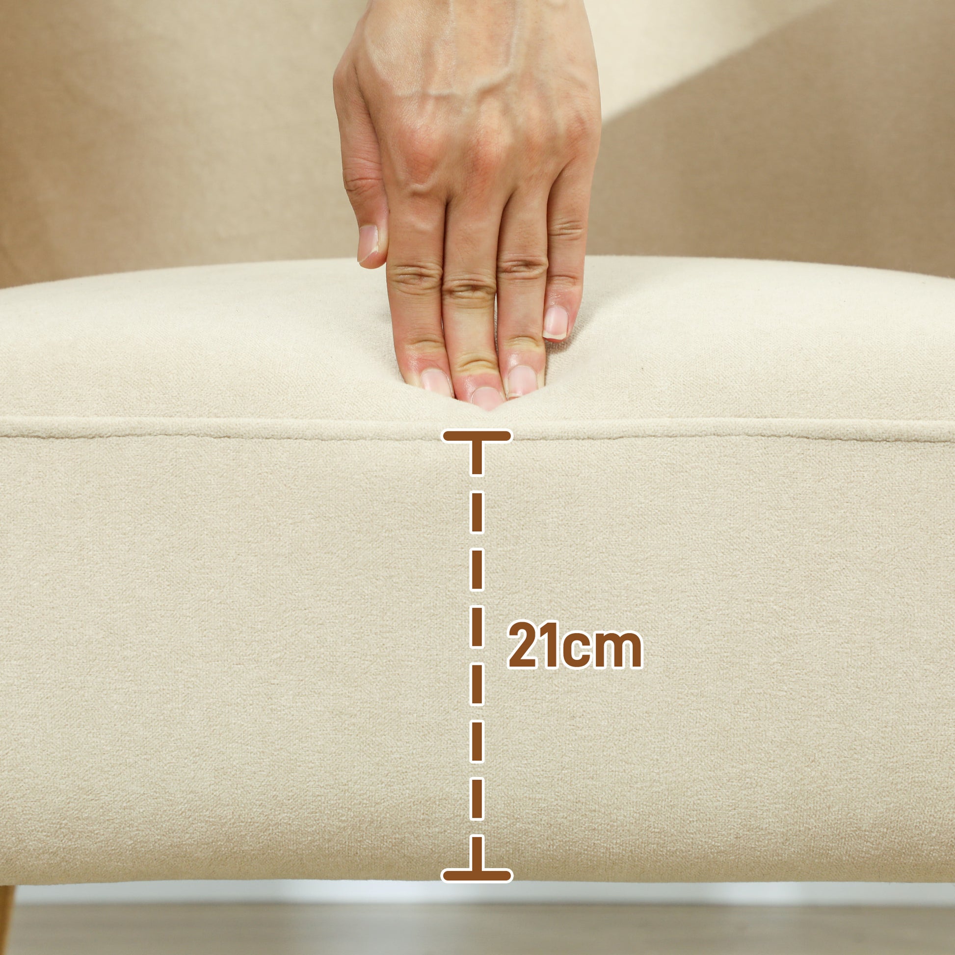 A poltrona é fácil de montar, com manual incluído para uma instalação sem complicações. Adicione um toque acolhedor e elegante ao seu espaço com esta poltrona nórdica em tons de bege e ocre.
