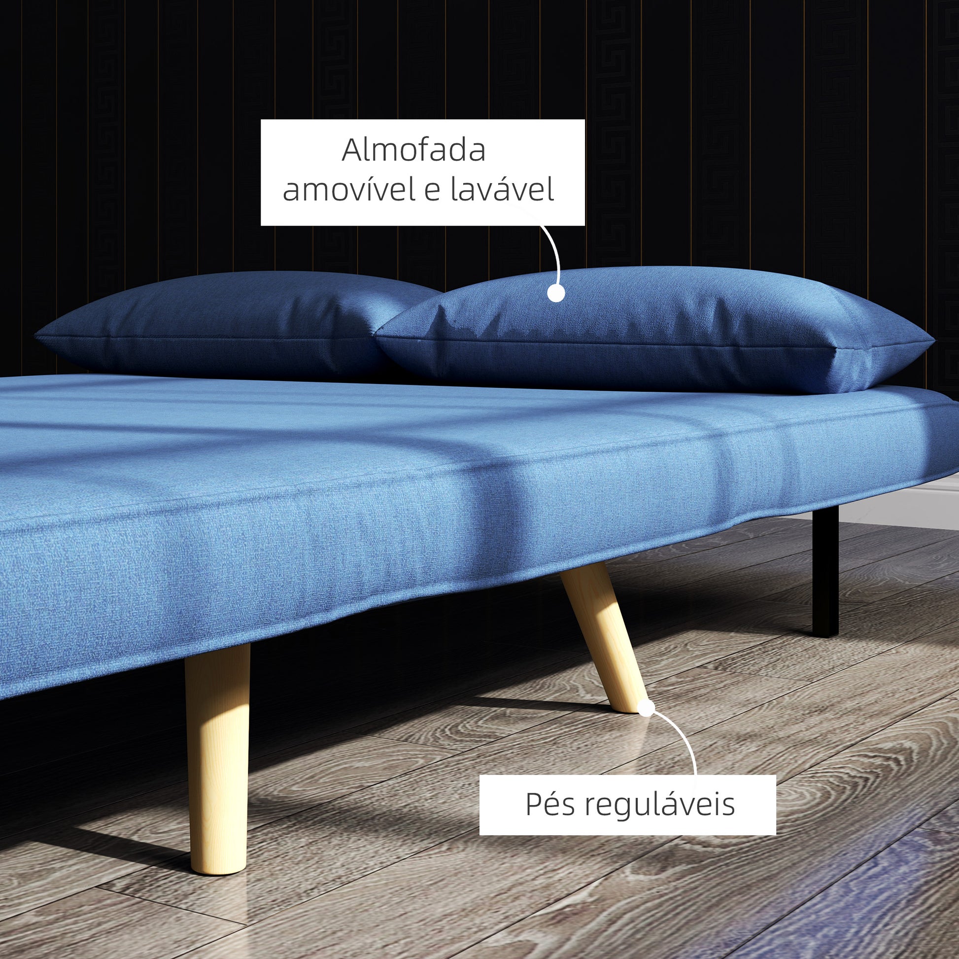 Sofá Cama de 2 Lugares – 120x75x85 cm – Azul Escuro – Linho