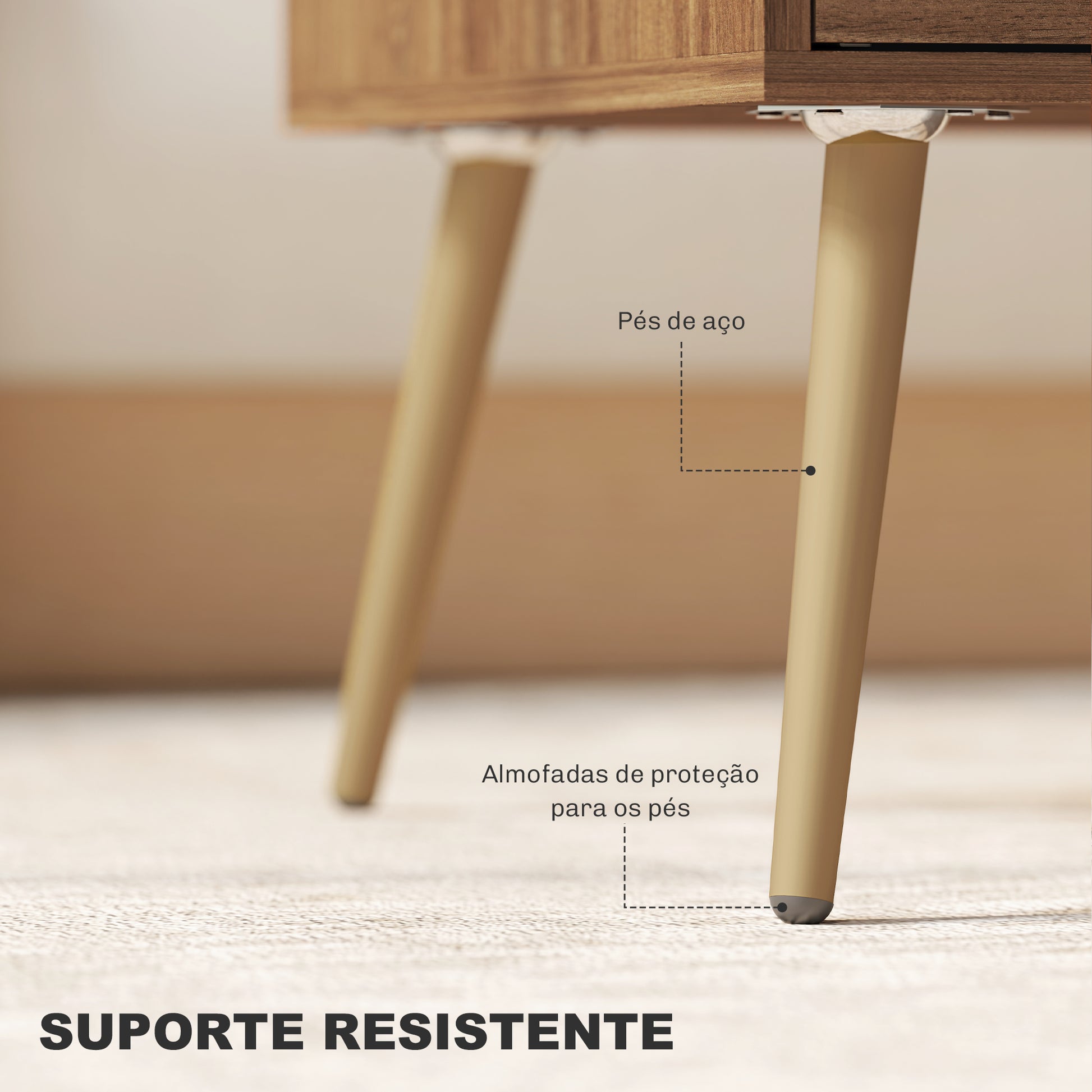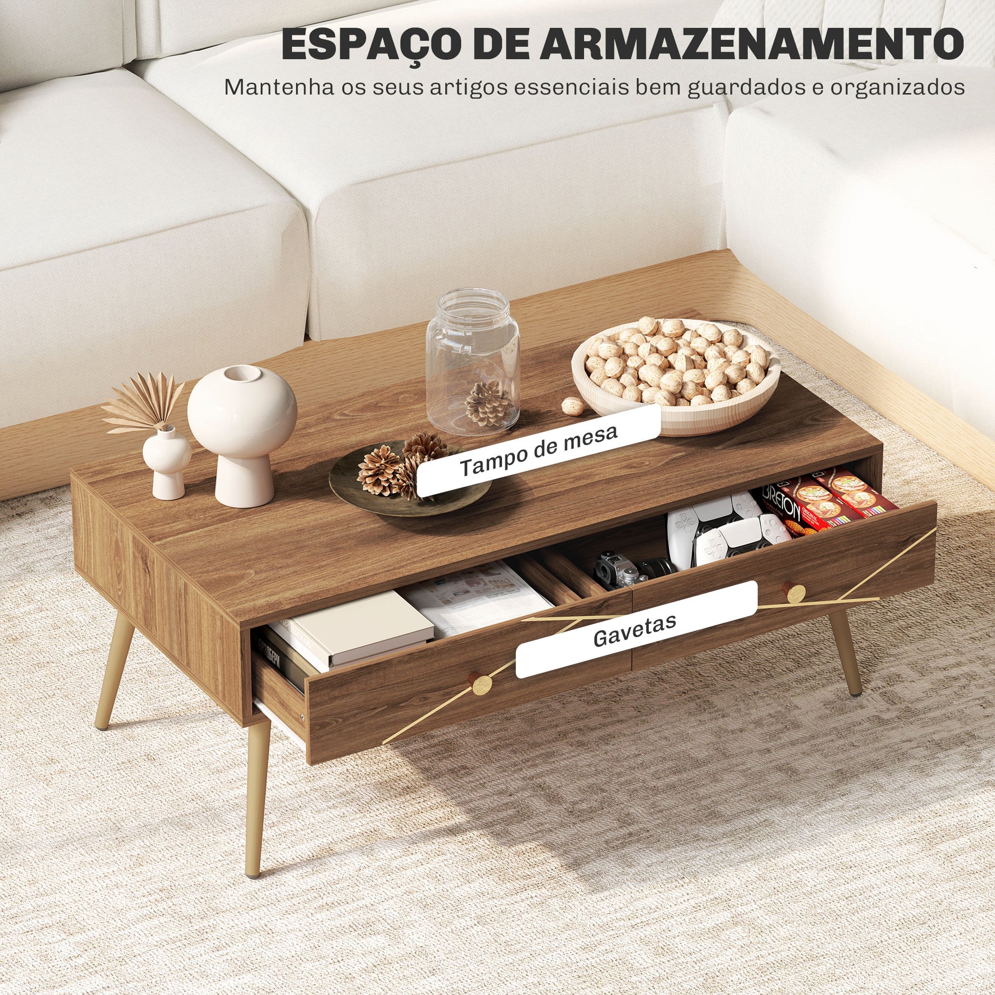 Adicione um toque de elegância à sua sala de estar com esta mesa de centro marrom de 100x50x41 cm, equipada com 2 gavetas e pés de aço.