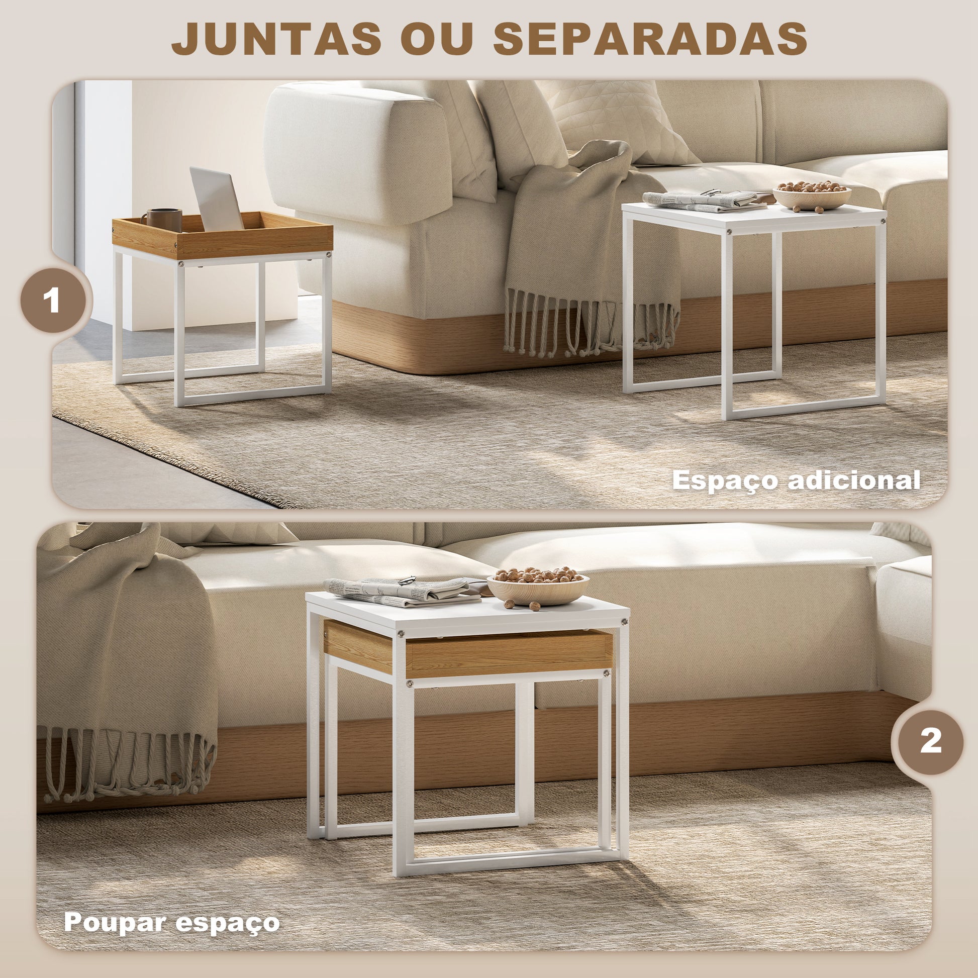 Transforme a sua sala de estar com este conjunto de 2 mesas auxiliares modernas, ideais para organizar o espaço de forma versátil e elegante.