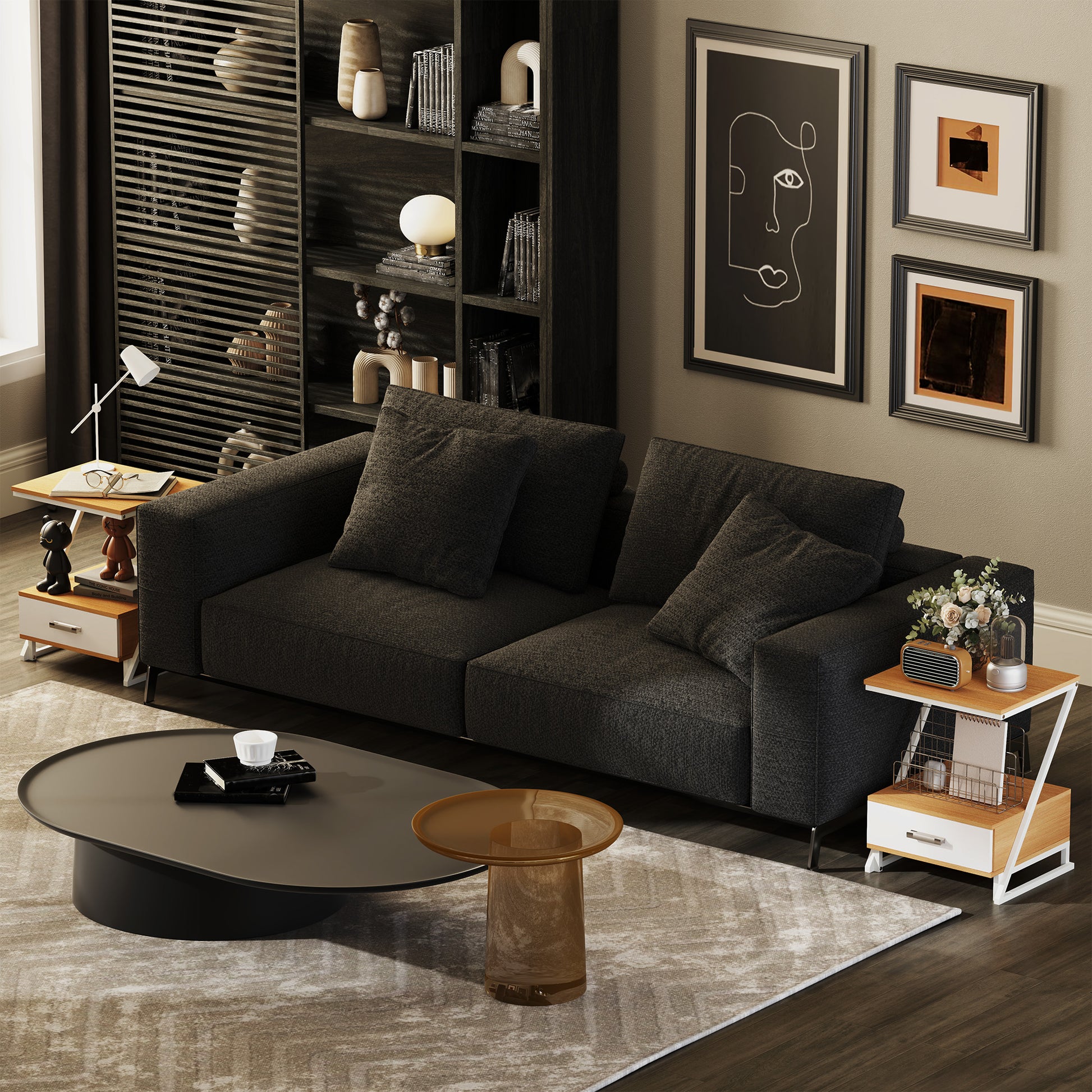 Renove o seu espaço com este conjunto de mesas de cabeceira em forma de Z, ideal para dar um toque moderno ao seu quarto ou sala de estar.