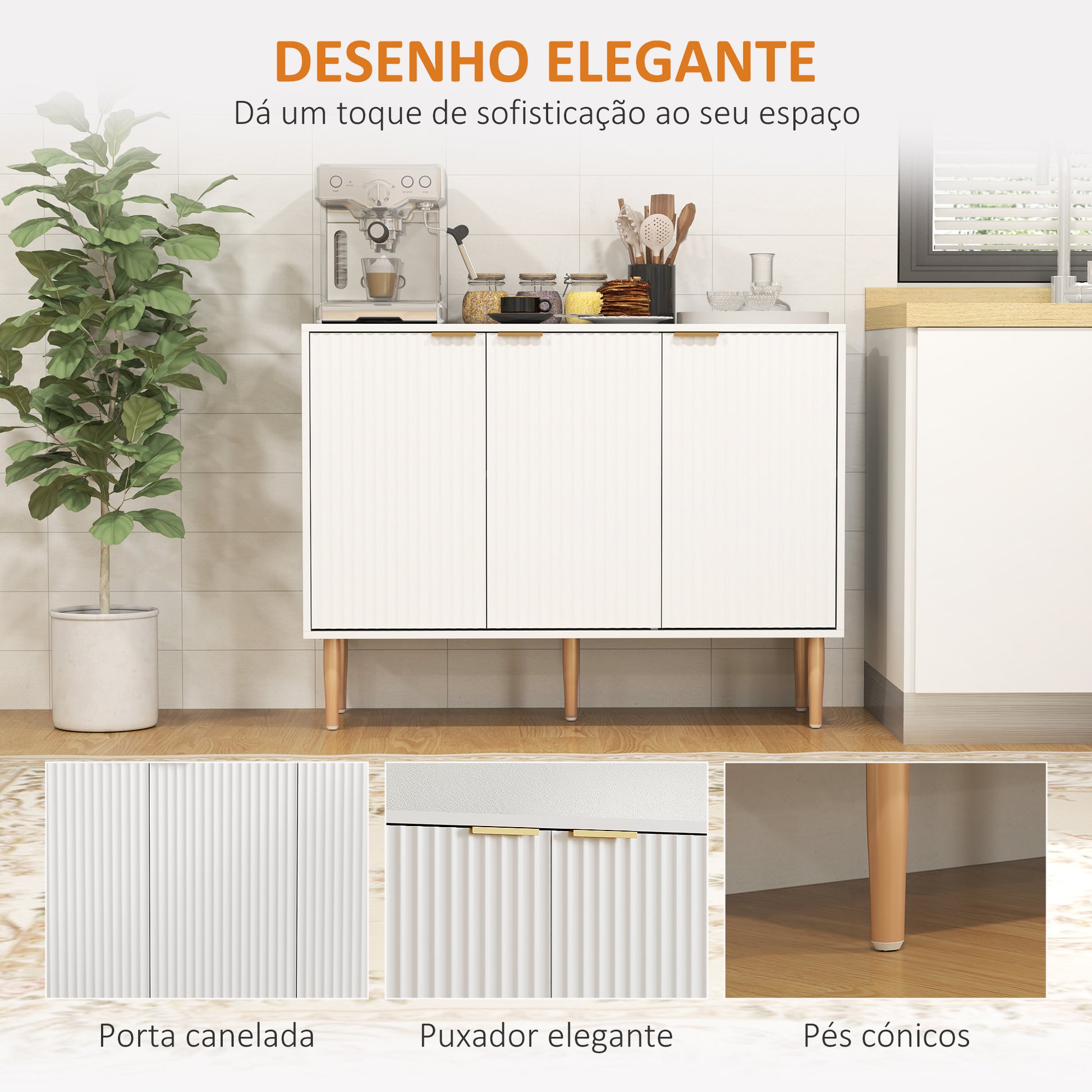 Aparador de Sala de Estar – 107x35x80 cm – Branco – Melamina e MDF