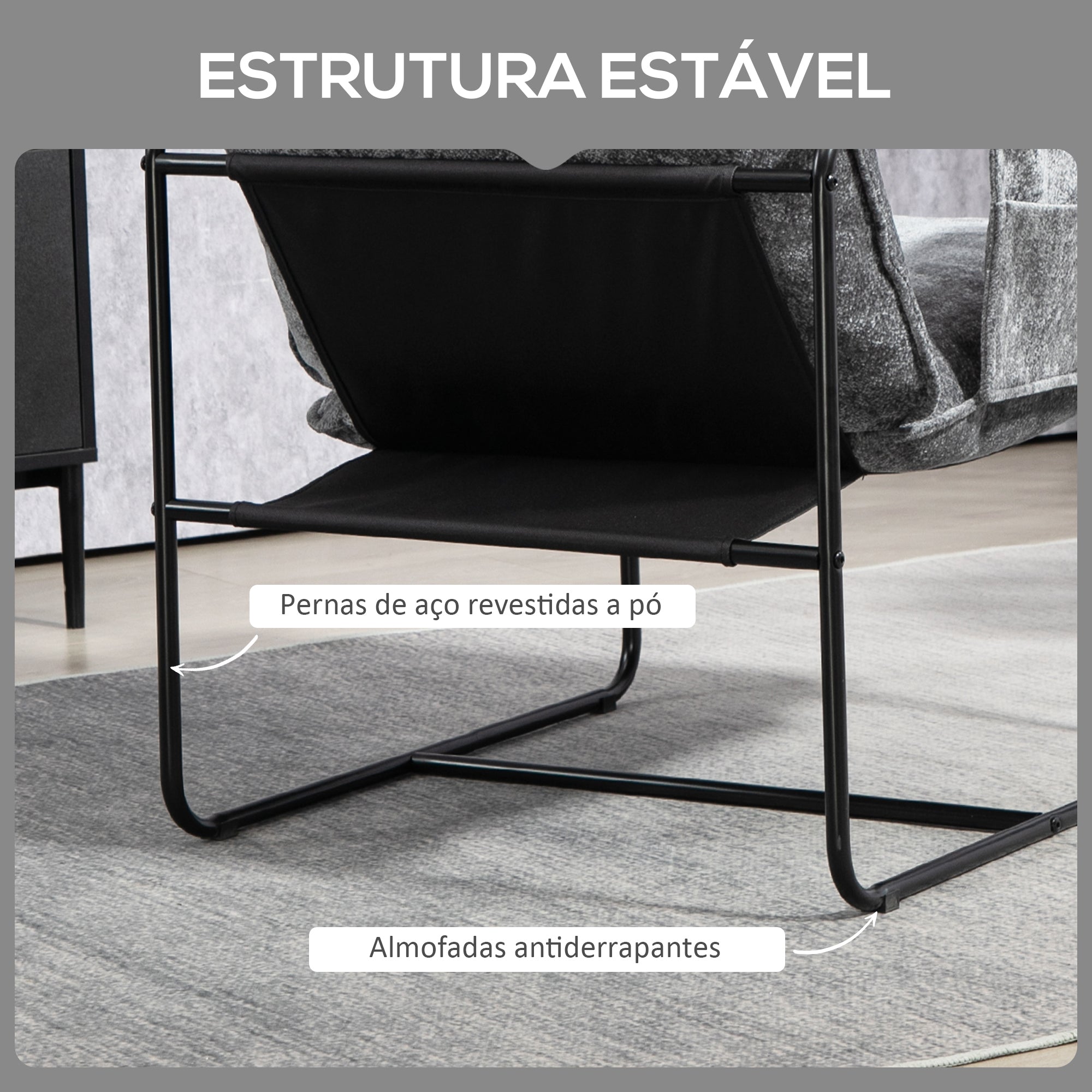 - Benefícios: Estofamento suave, almofadas amovíveis e laváveis, bolsos práticos nos apoios de braços