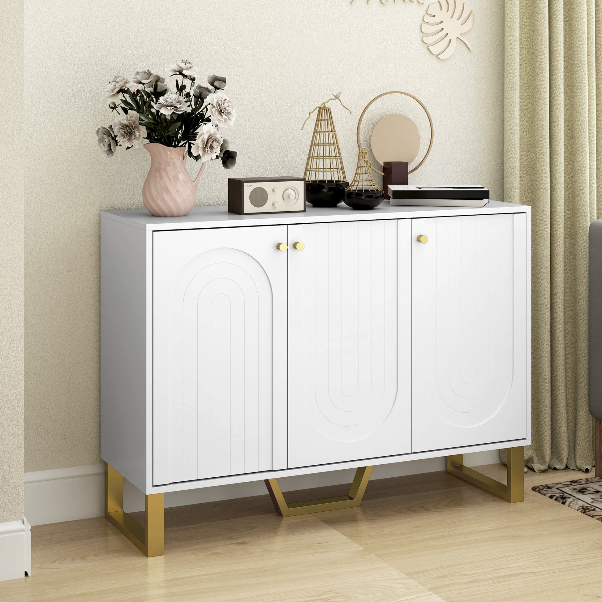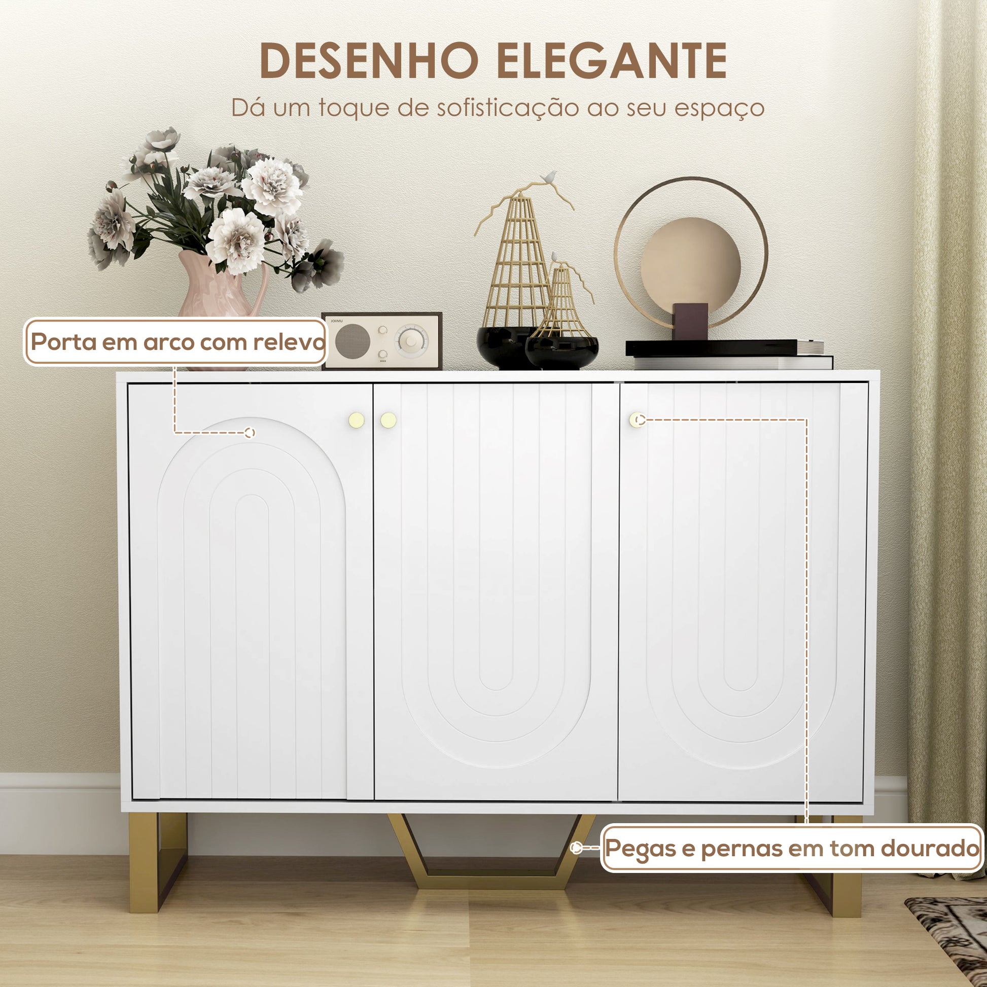 Aparador Moderno Branco 106,5x35x77,5 cm com Prateleiras Ajustáveis e Pés Dourados