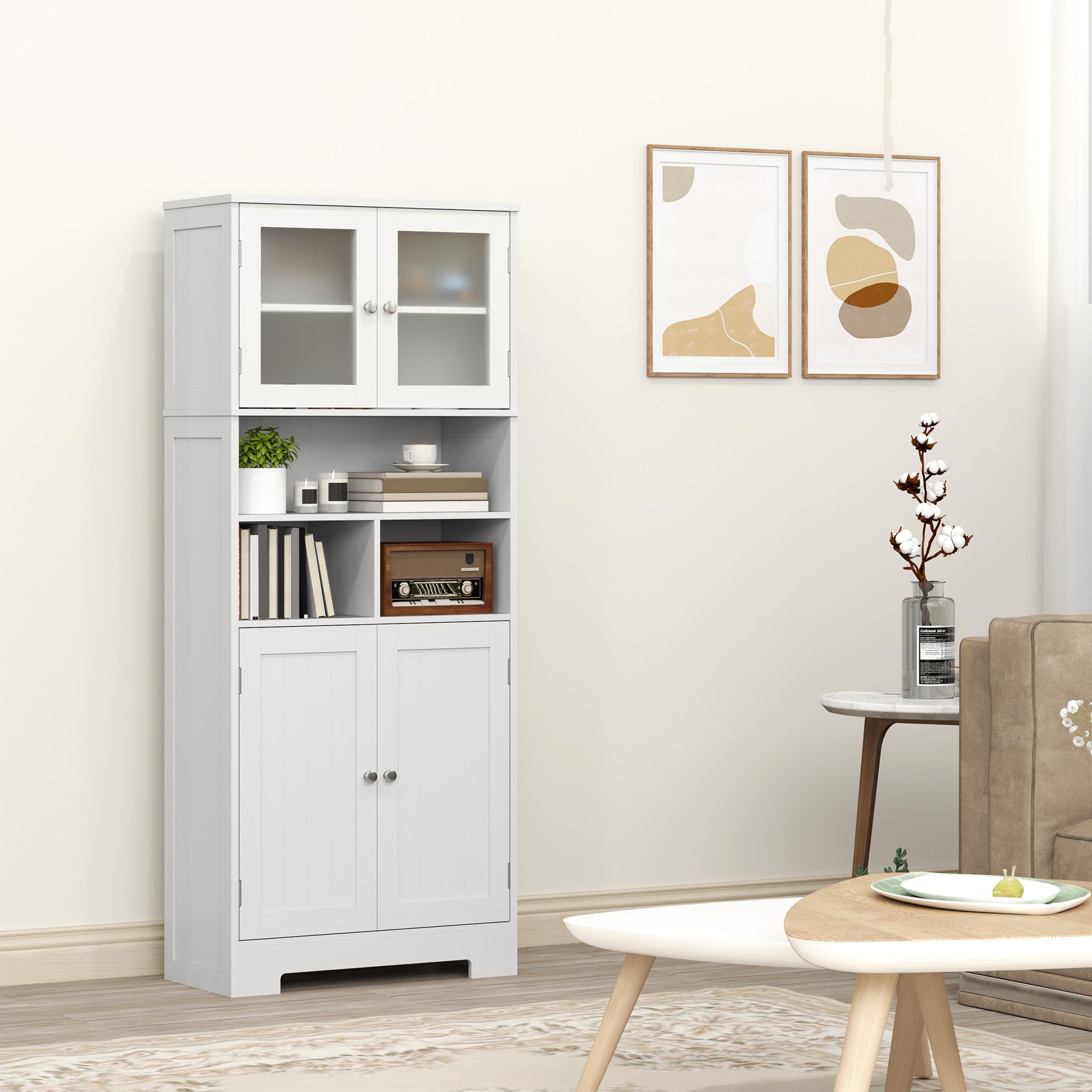Armário Alto de Cozinha com 2 Portas de Vidro 60x30x145,5 cm - Branco