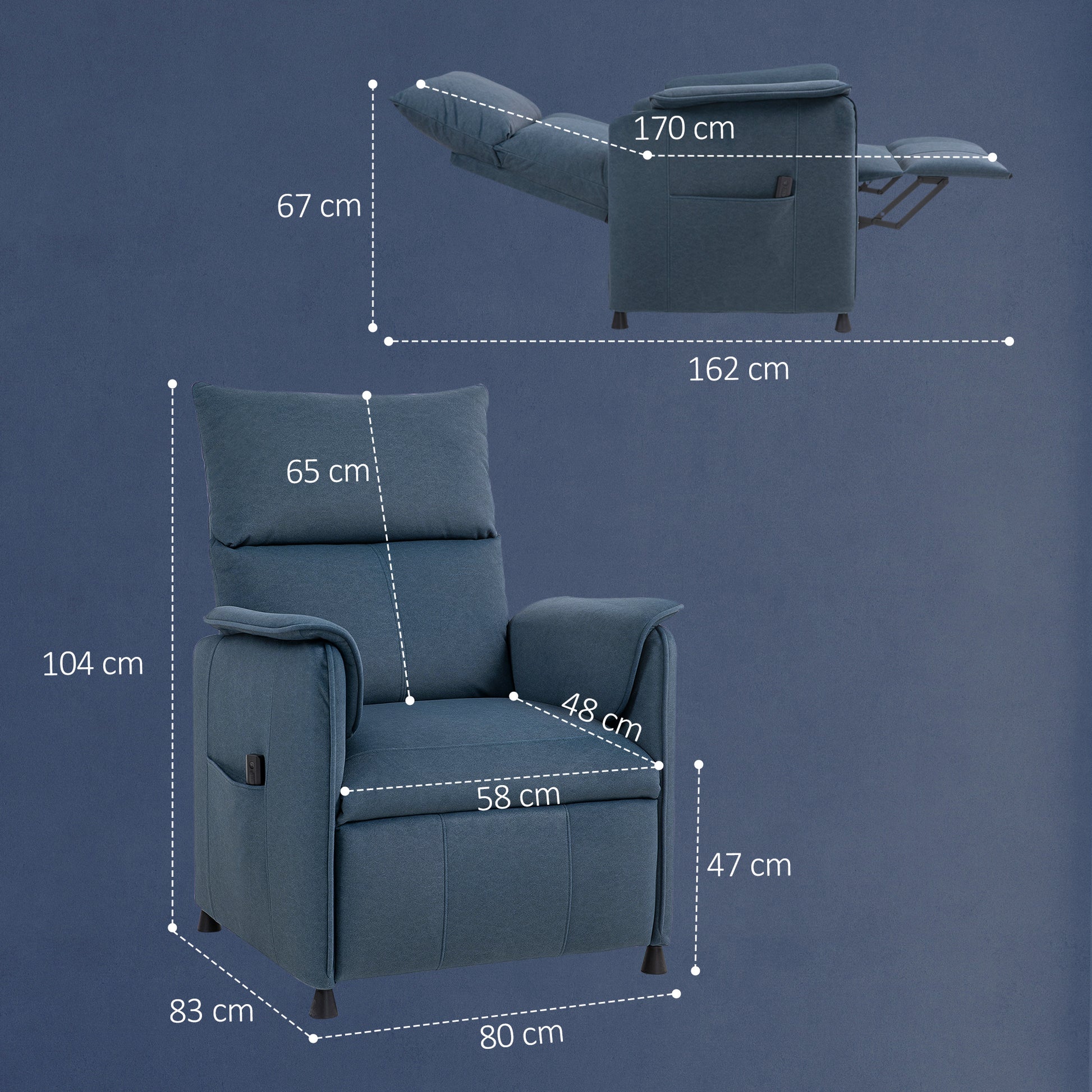 Poltrona Relax Reclinável Elétrica Azul Escuro 80x83x104 cm
