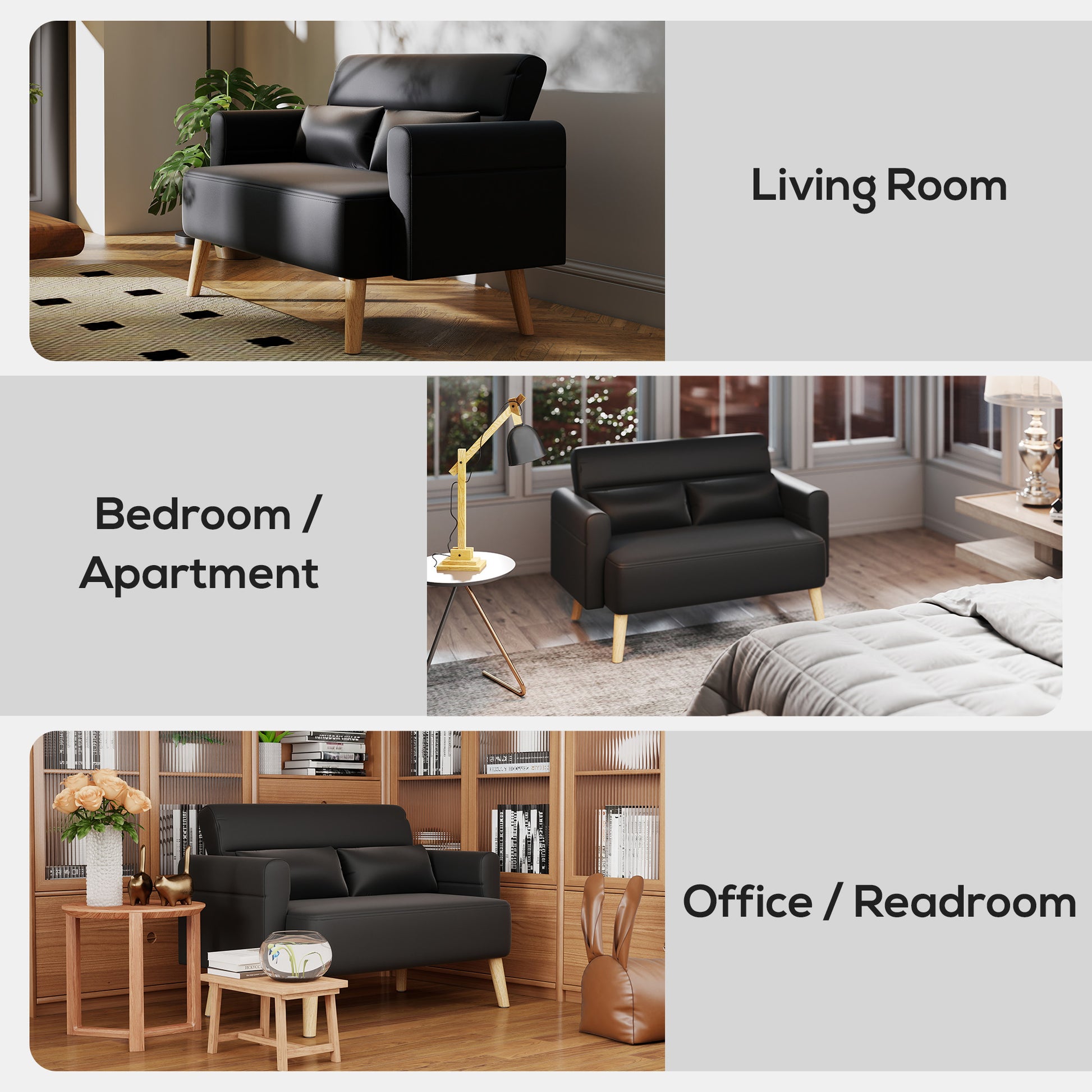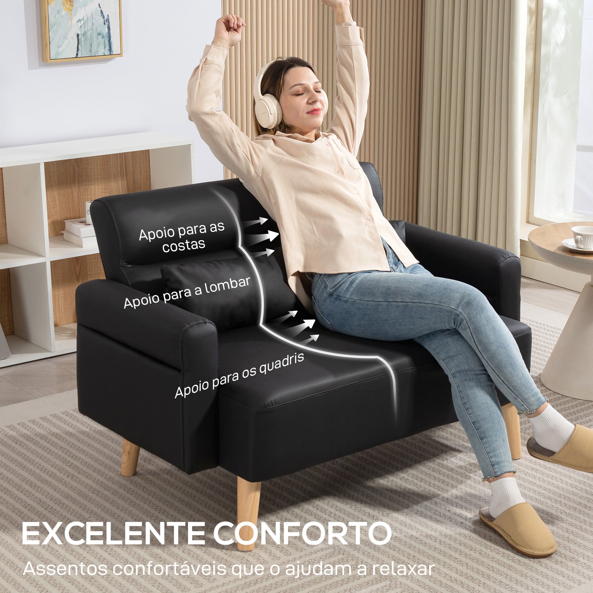 Procurando por um sofá elegante e compacto para a sua casa? Este sofá de dois lugares em preto é a escolha perfeita. Com medidas de 117x78x78 cm, estofado em couro sintético e design funcional, é ideal para espaços pequenos.