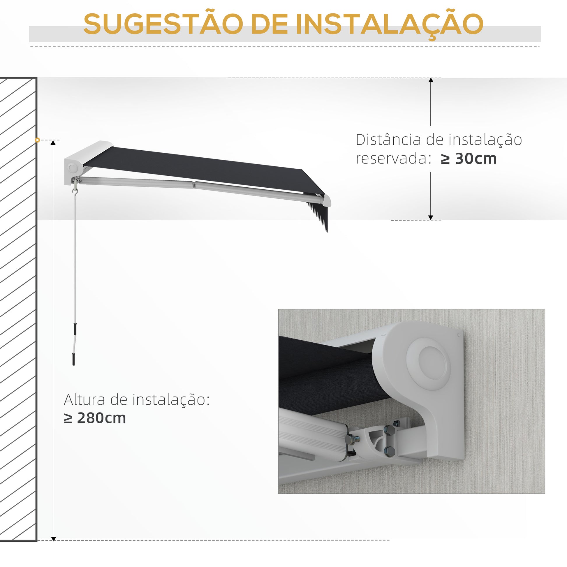 - Outras Especificações: Cor cinzento escuro, comprimento da manivela de 150 cm, alcance do controle remoto de 30 m e potência de 244W.