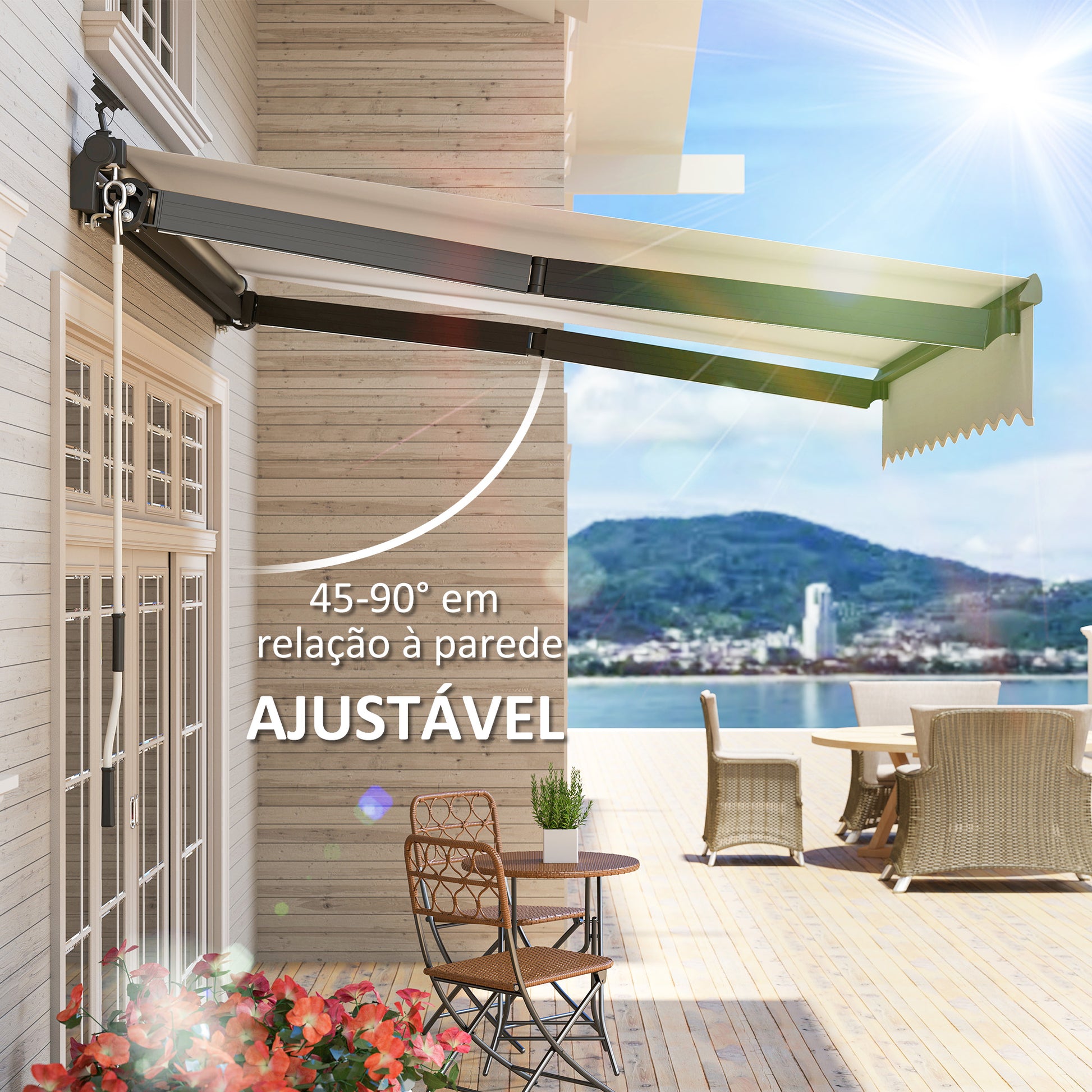 O Toldo Manual Retrátil Creme Branco é elegante e funcional, combinando perfeitamente com qualquer espaço exterior. A montagem parcial prévia facilita a instalação, tornando-o uma escolha prática e durável para o seu jardim ou varanda.