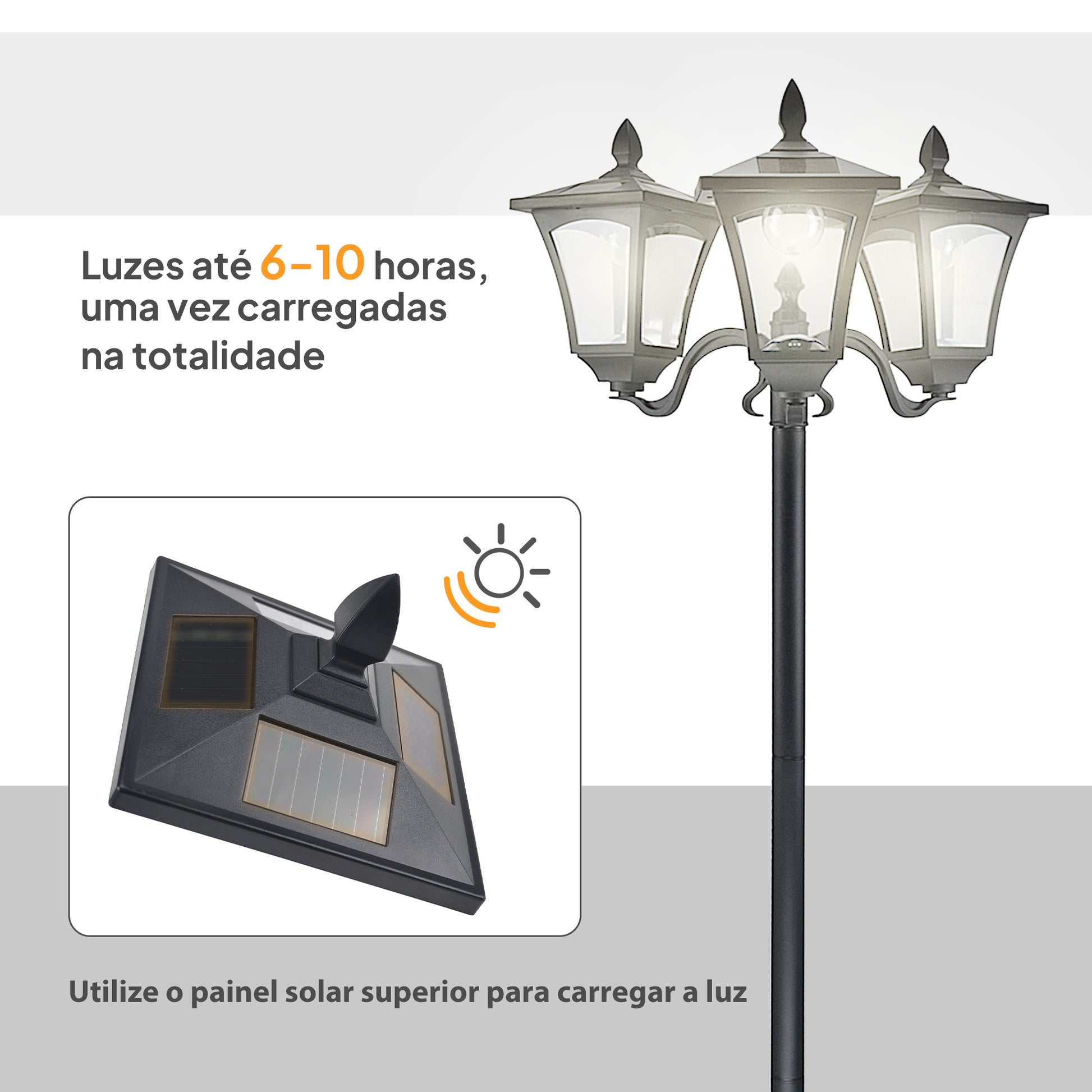 Candeeiro Solar para Exterior com 3 Luzes LED IP44 51,5x47x182,5cm Preto