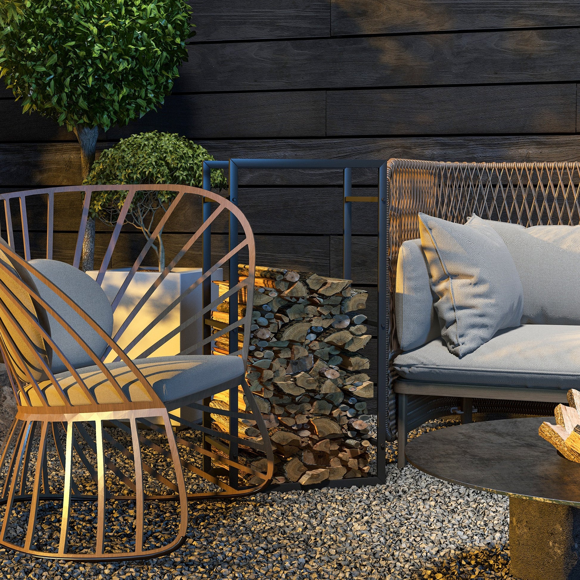 Este suporte para lenha metálico é a solução ideal para manter a sua lenha organizada e pronta para uso, tanto no interior como no exterior.