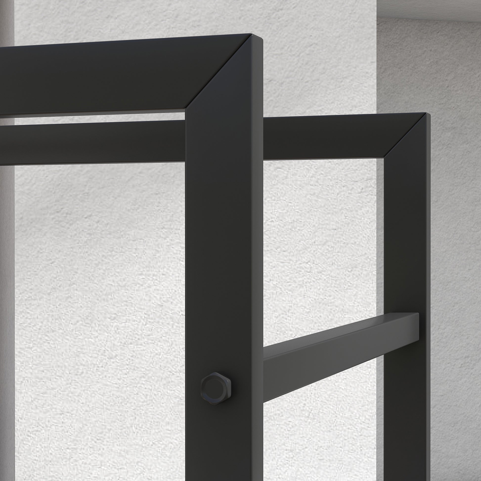 - Materiais: Fabricado em metal revestido a pó preto, é resistente e durável.