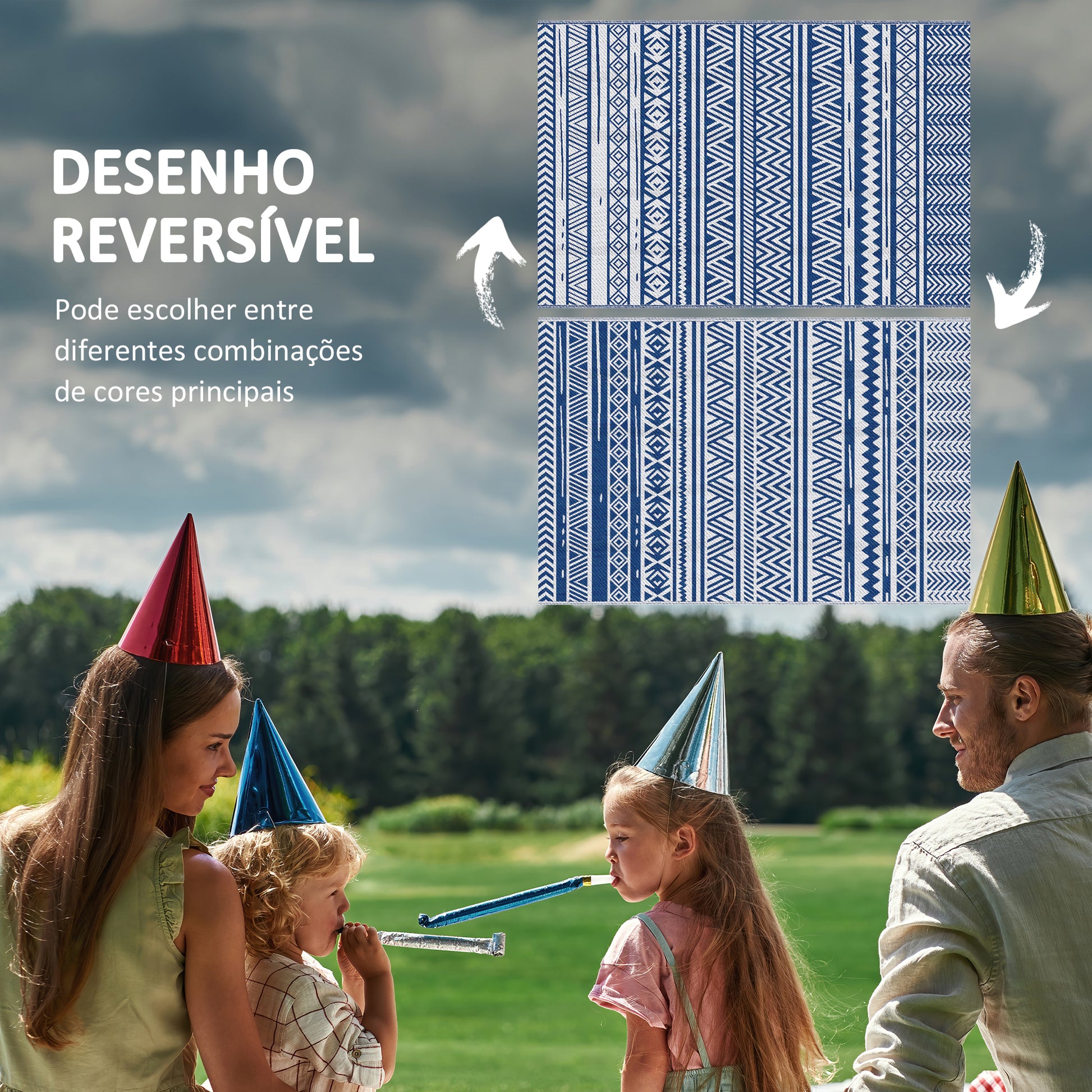 Tapete de Exterior Reversível – 182x274 cm – Azul e Branco – Polipropileno