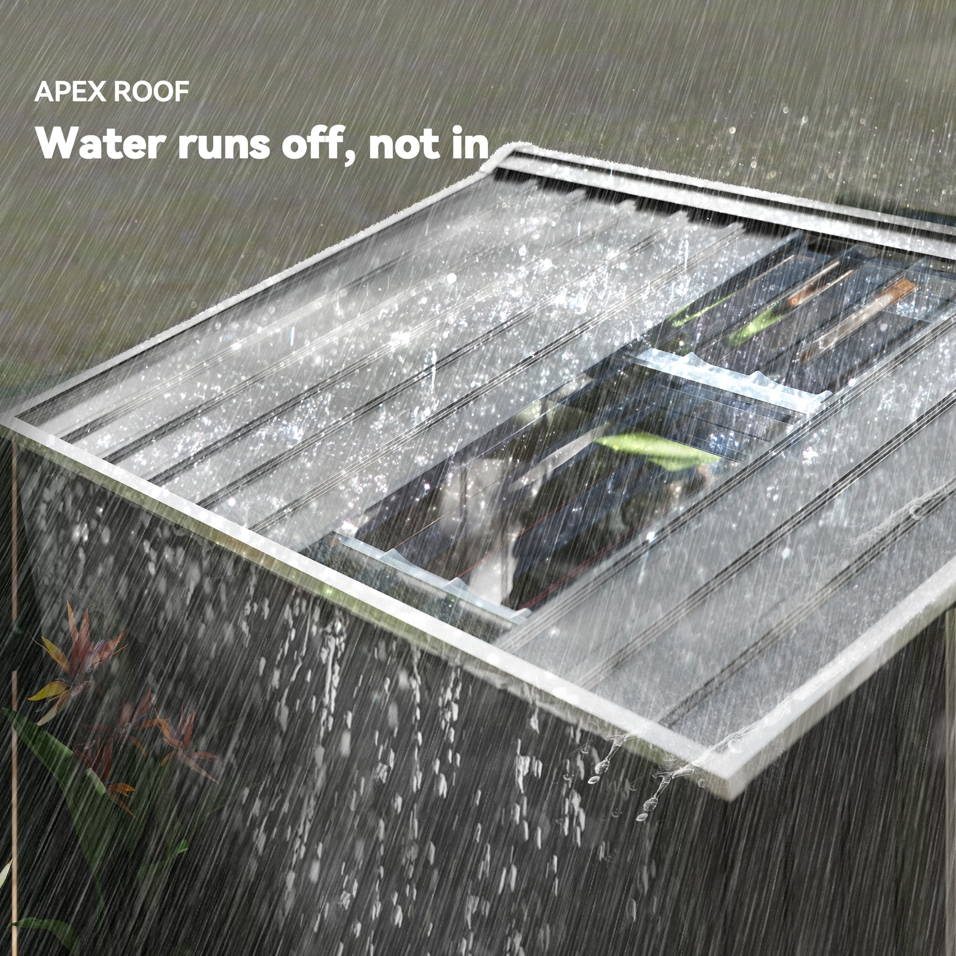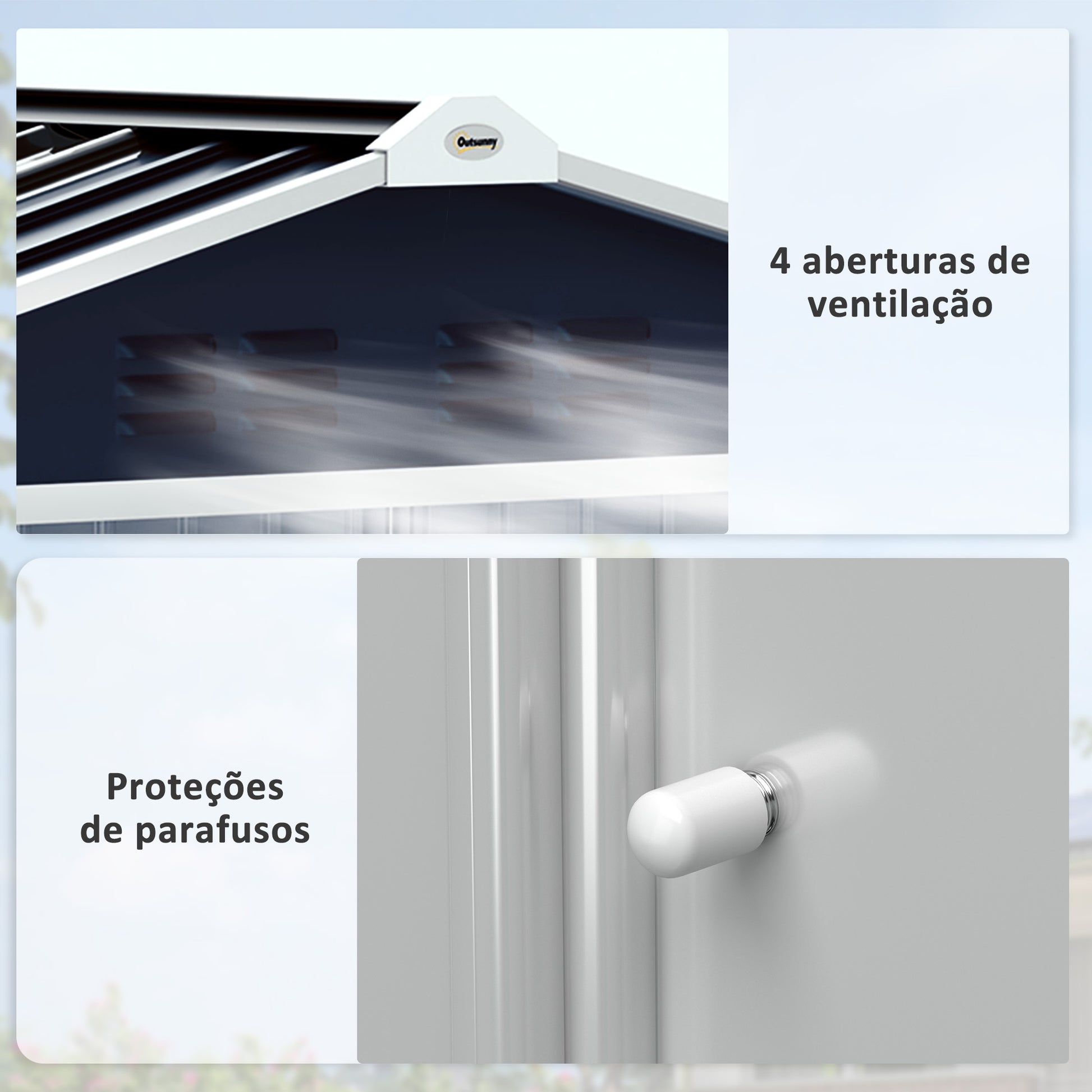 Este abrigo de jardim metálico oferece um amplo espaço para armazenar ferramentas, utensílios de jardinagem e outros objetos, mantendo-os organizados e protegidos.