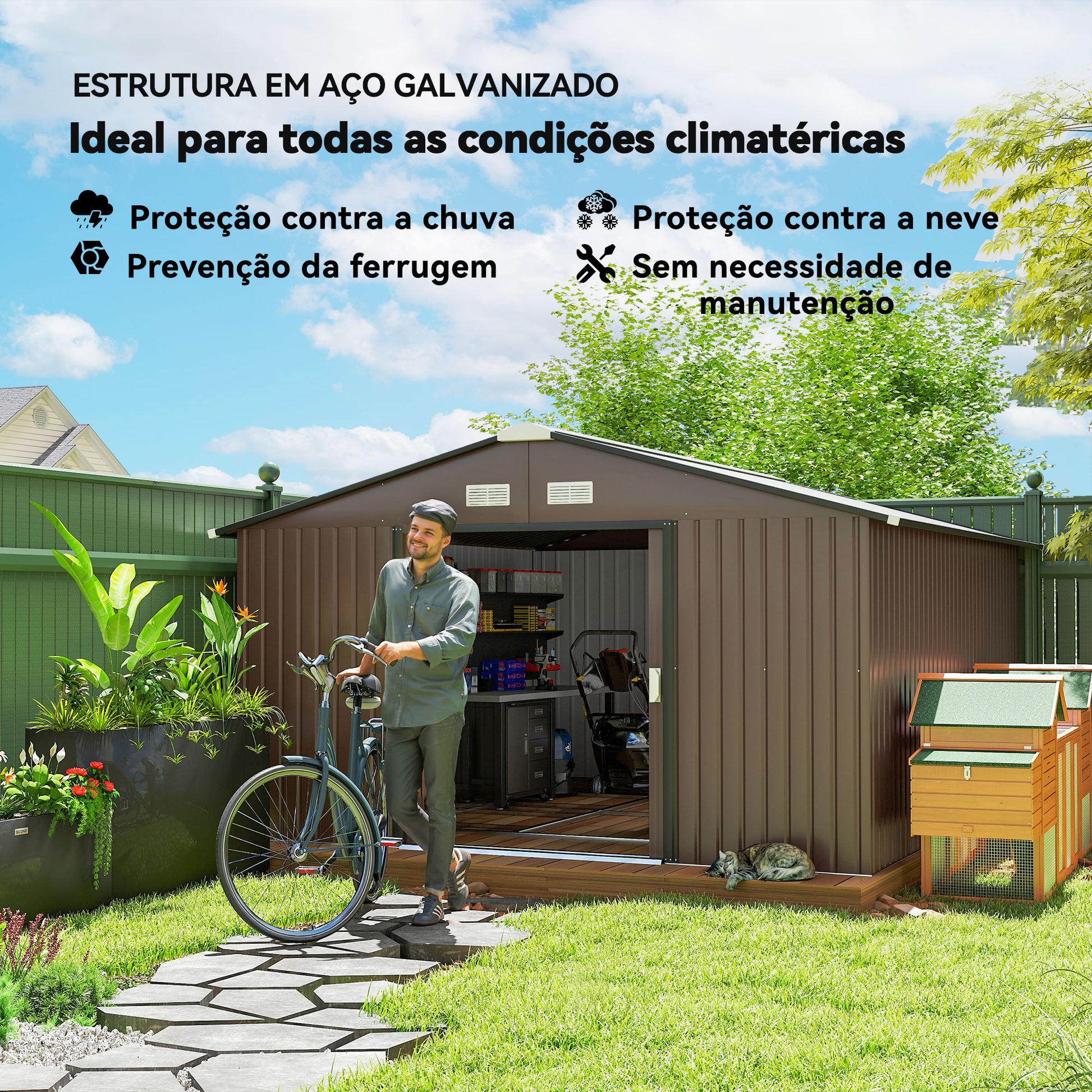Abrigo de Jardim Metálico – 340x386x200 cm – Marrom – Aço Galvanizado