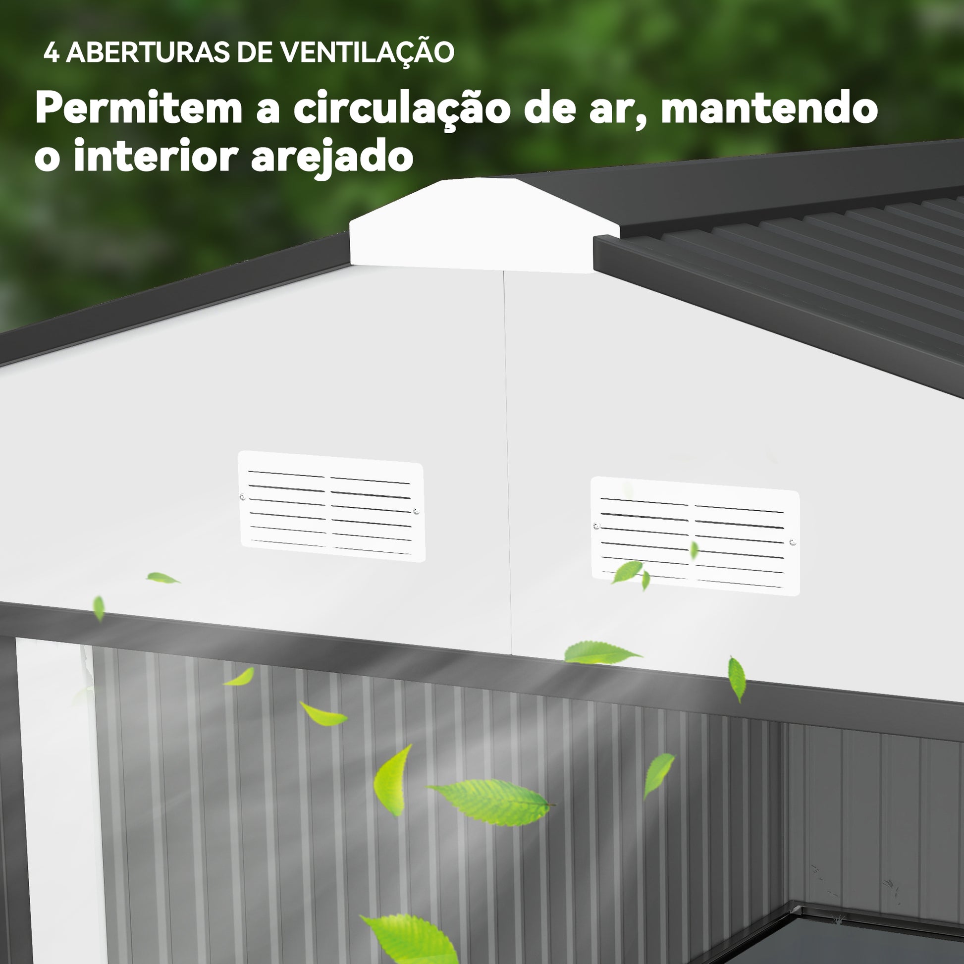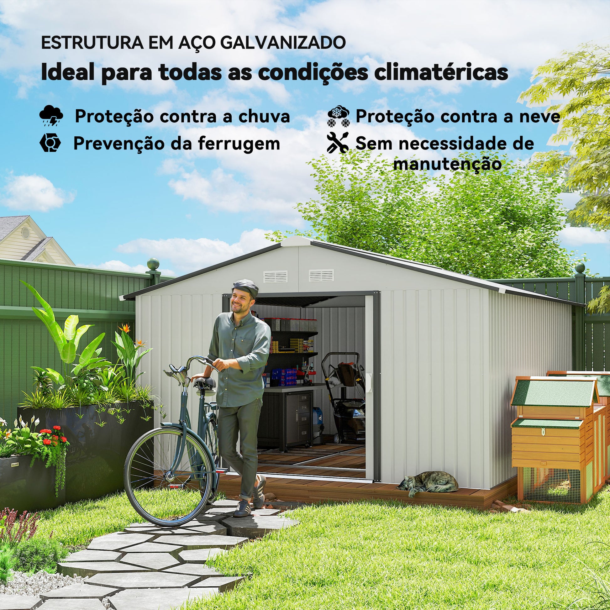 Abrigo de Jardim Metálico – 340x386x200 cm – Branco e Cinza Escuro – Aço Galvanizado