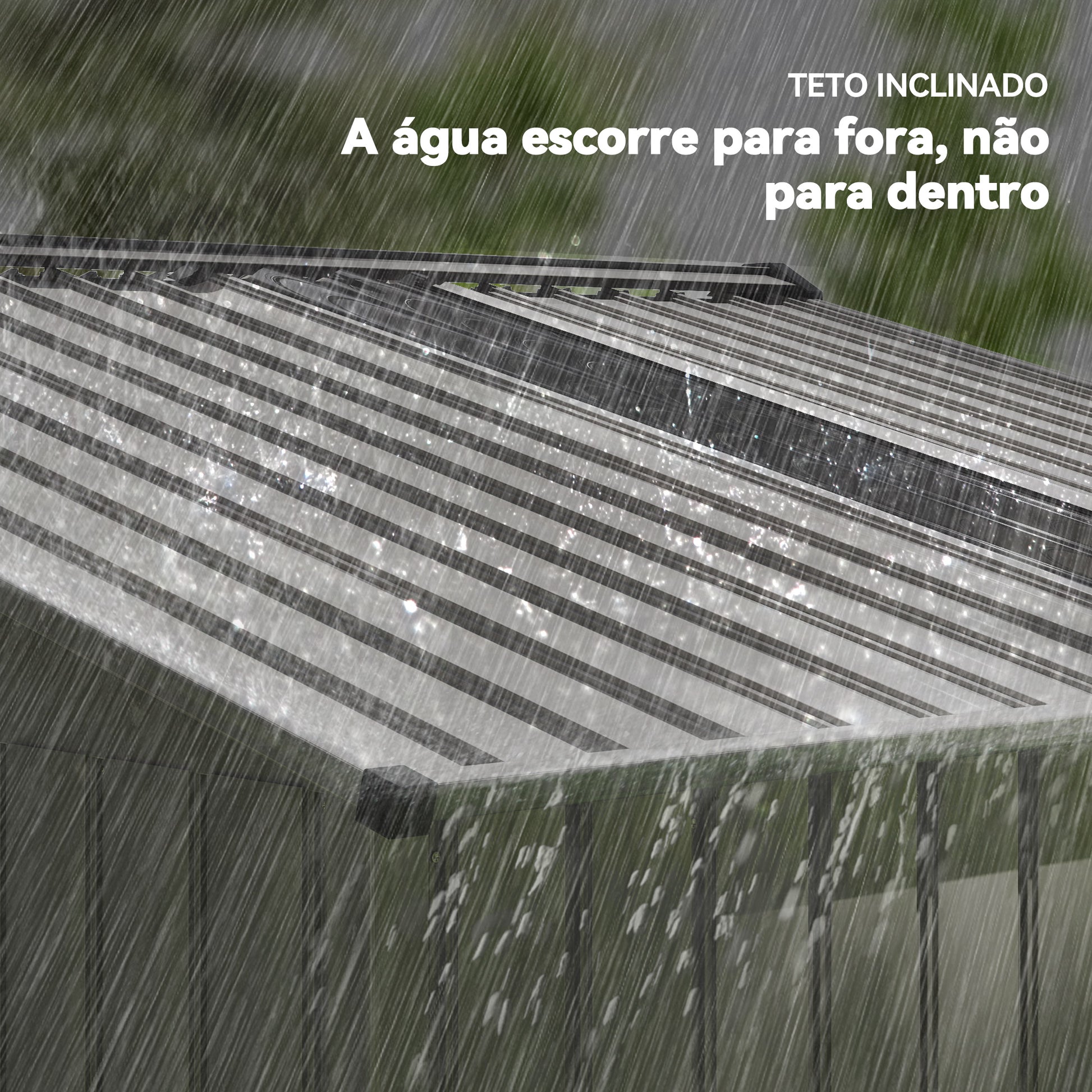 O Abrigo de Jardim Exterior Cinzento é a solução perfeita para armazenar ferramentas, acessórios de jardinagem e muito mais. Com medidas de 277x195x192cm, este abrigo oferece um amplo espaço interior para manter tudo organizado e protegido.