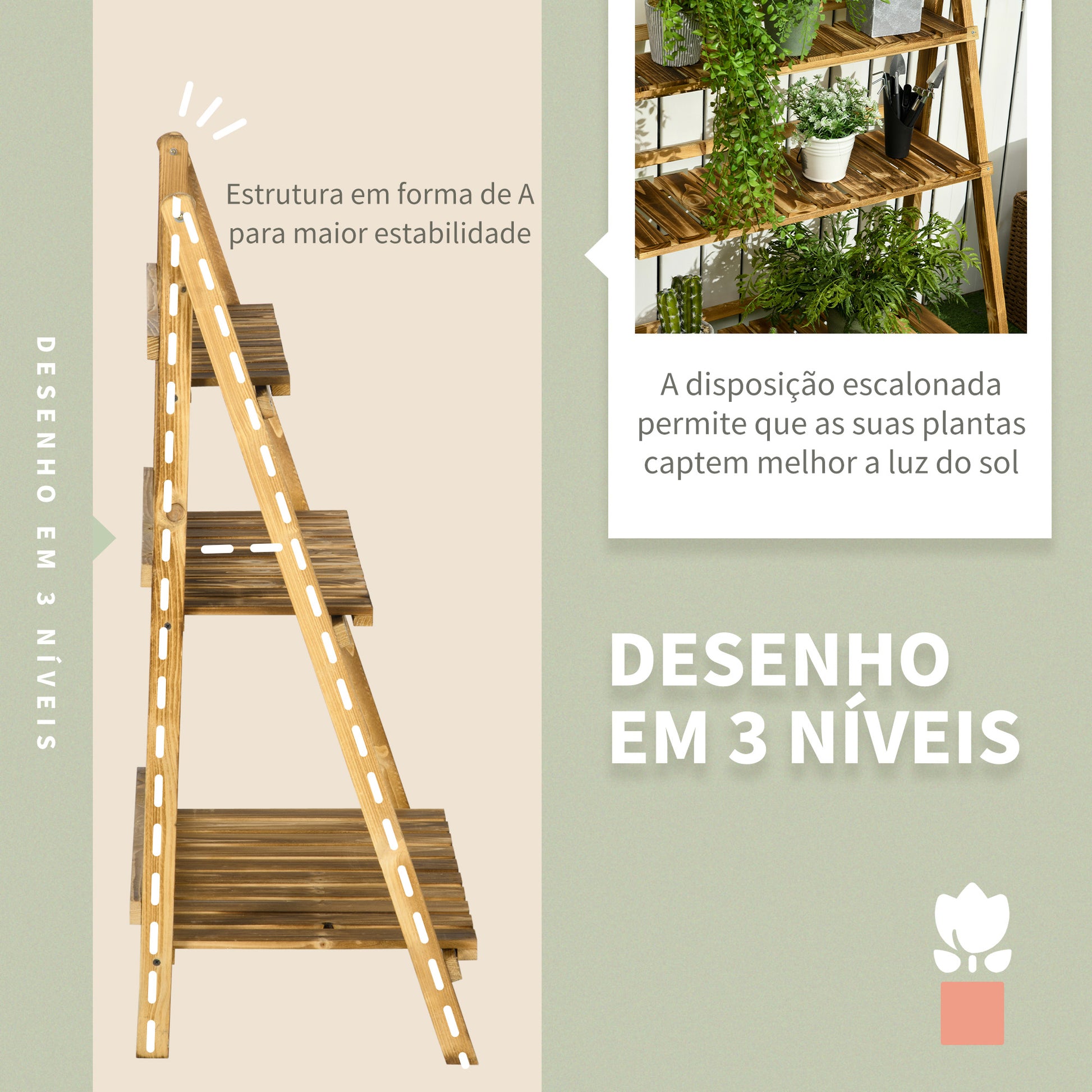 Organize suas plantas de forma vertical com o Suporte para Plantas de 3 Níveis em madeira. Com barra de segurança para evitar quedas, este suporte é ideal para interior e exterior.