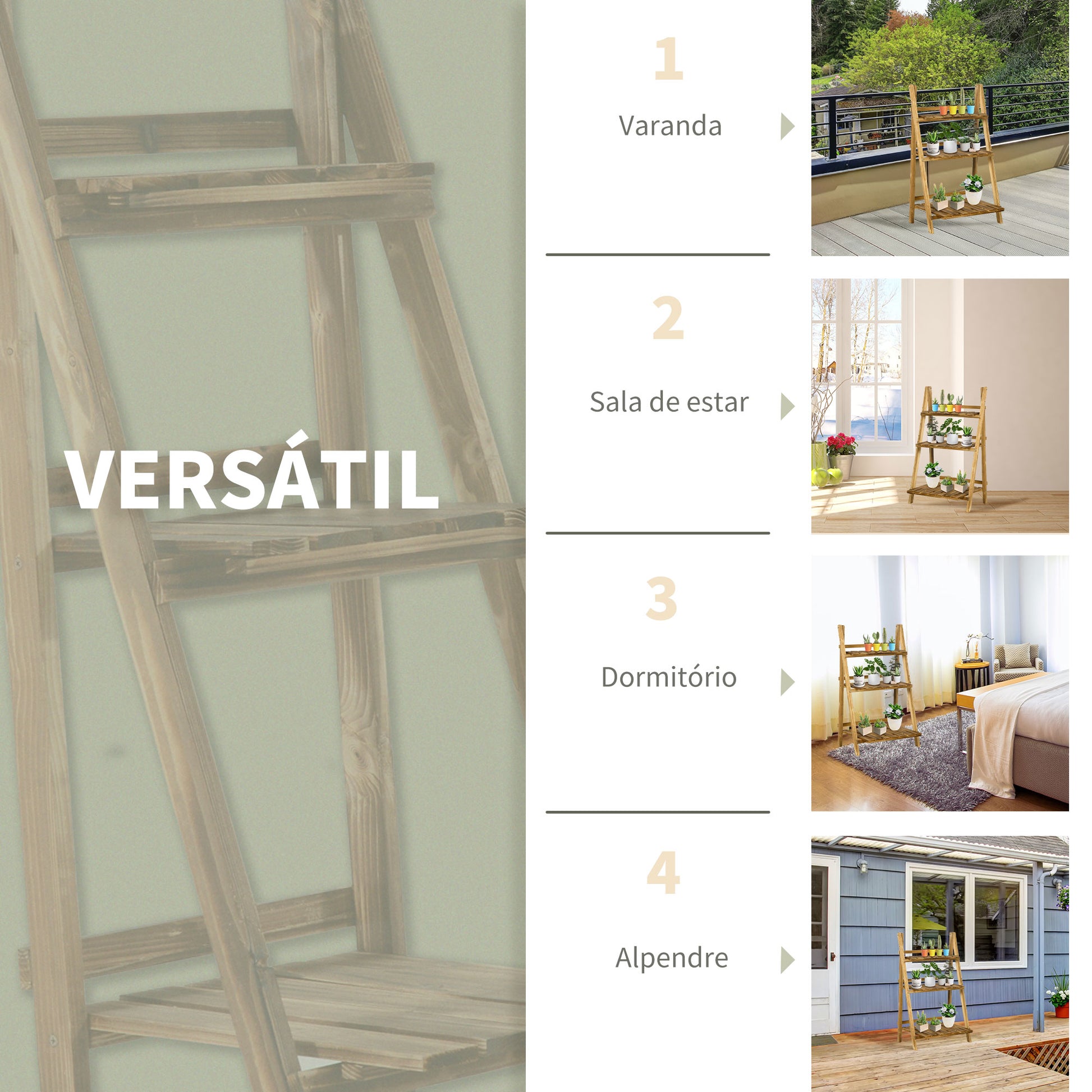 - Usos recomendados: Ideal para ambientes internos e externos, expositor de decorações e plantas