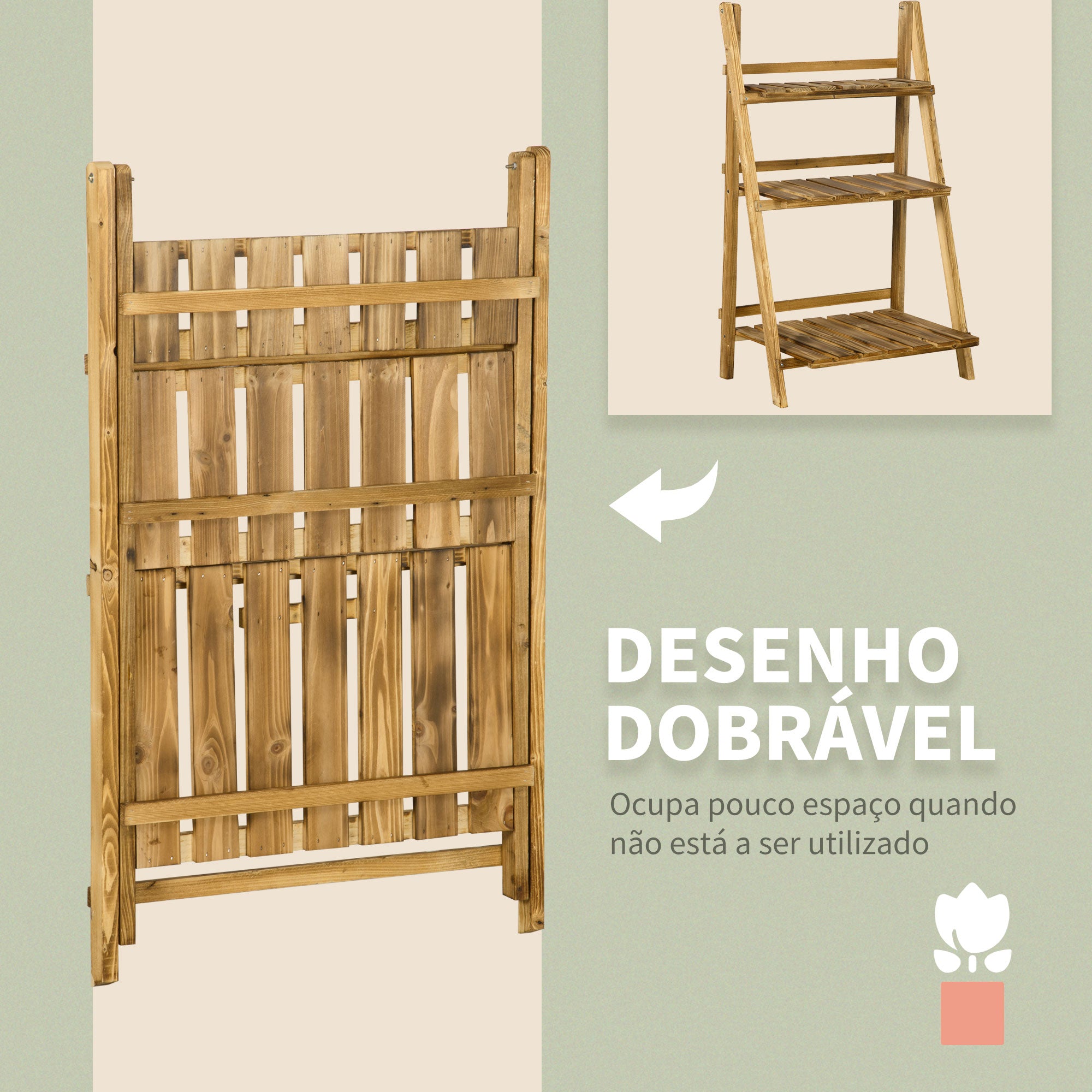 Suporte para Plantas de 3 Níveis – 60x37x93 cm – Madeira Carbonizada