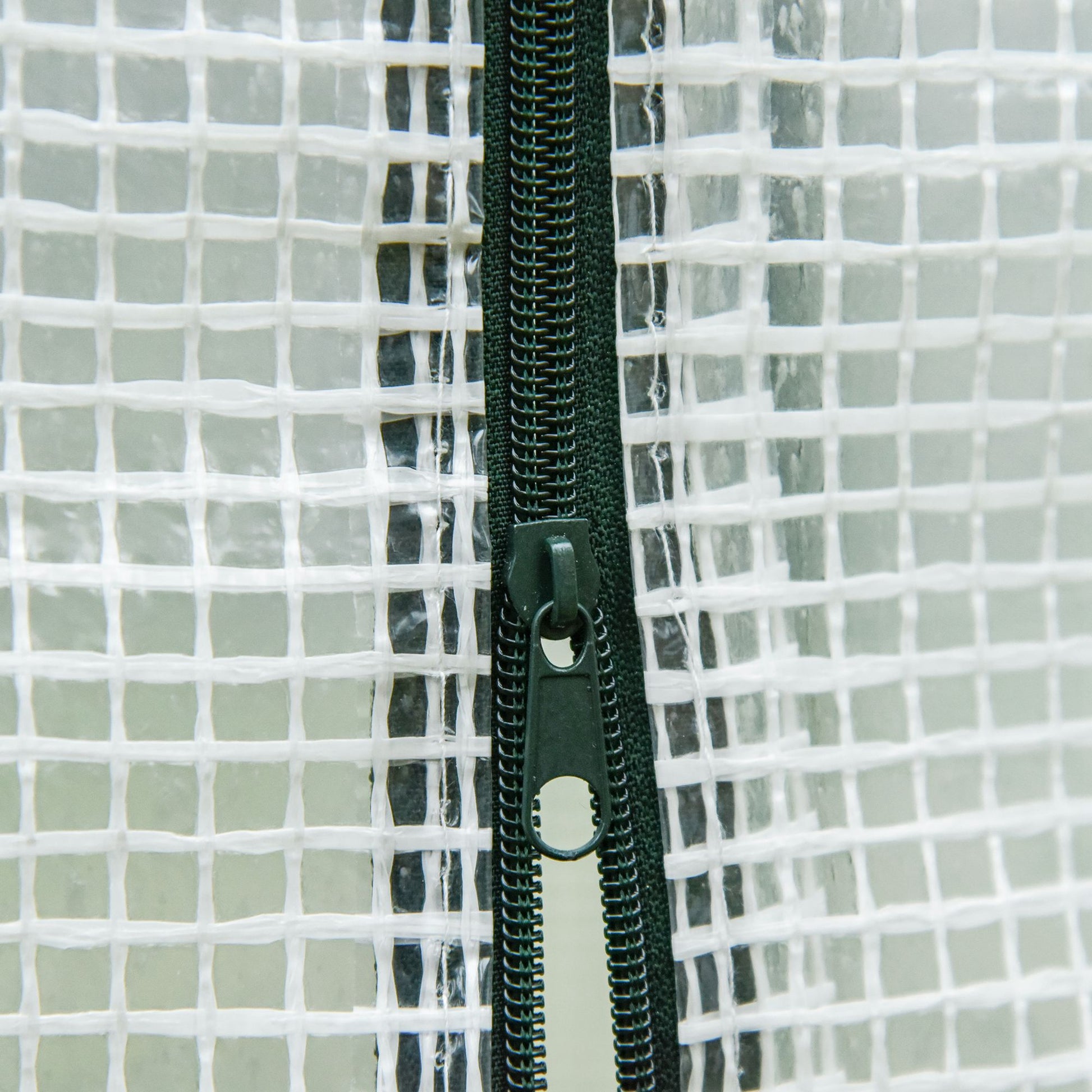 A estufa possui uma estrutura resistente em aço que garante durabilidade em diferentes condições climatéricas. A cobertura retém o calor e protege do vento e da chuva, enquanto a porta de enrolar facilita o acesso às plantas. Aproveite o seu jardim ao máximo com esta estufa compacta e funcional.