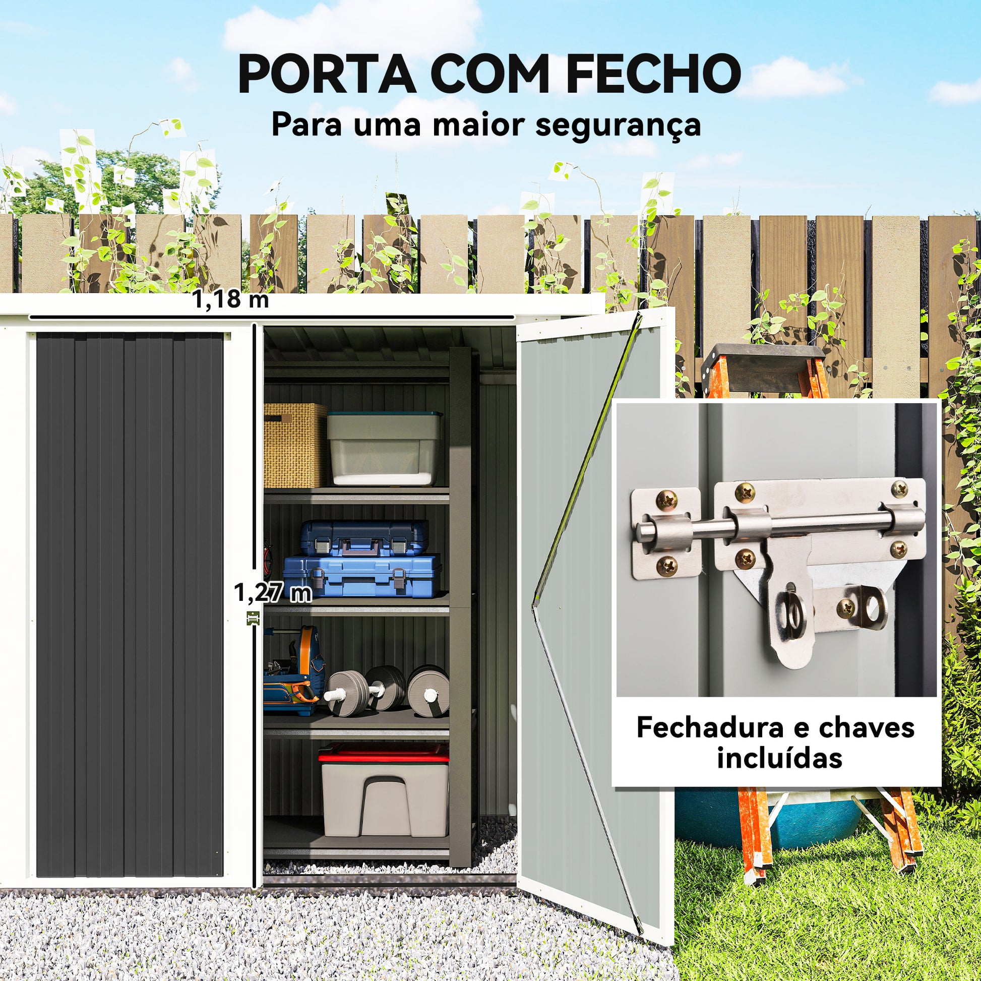 - Benefícios: Amplo espaço de 1,26 m² para armazenamento, porta dupla com trinco de segurança