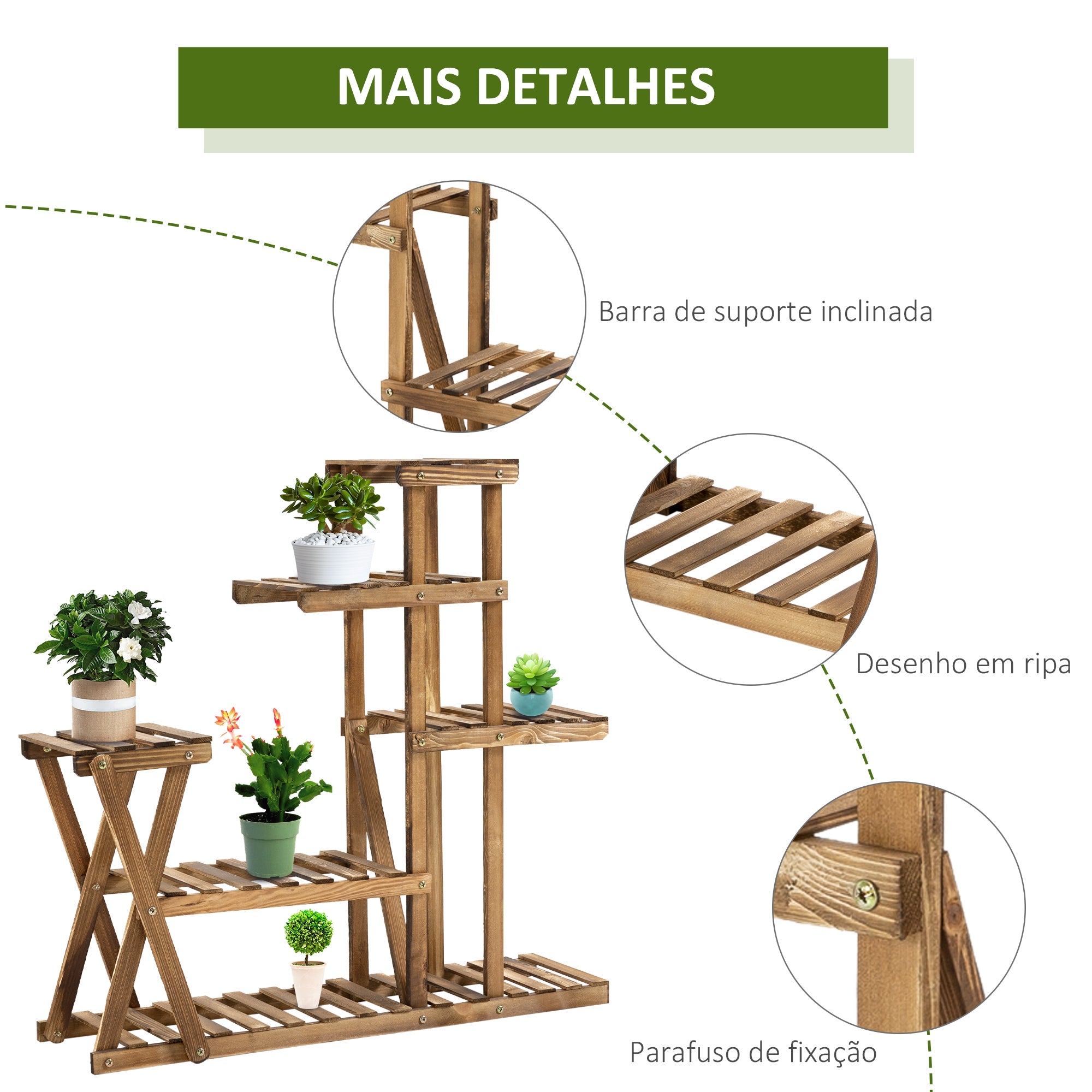 O suporte para plantas de madeira carbonizada é versátil e pode ser facilmente combinado com diferentes estilos de móveis e ambientes, tornando-se a escolha perfeita para decorar jardins e casas.
