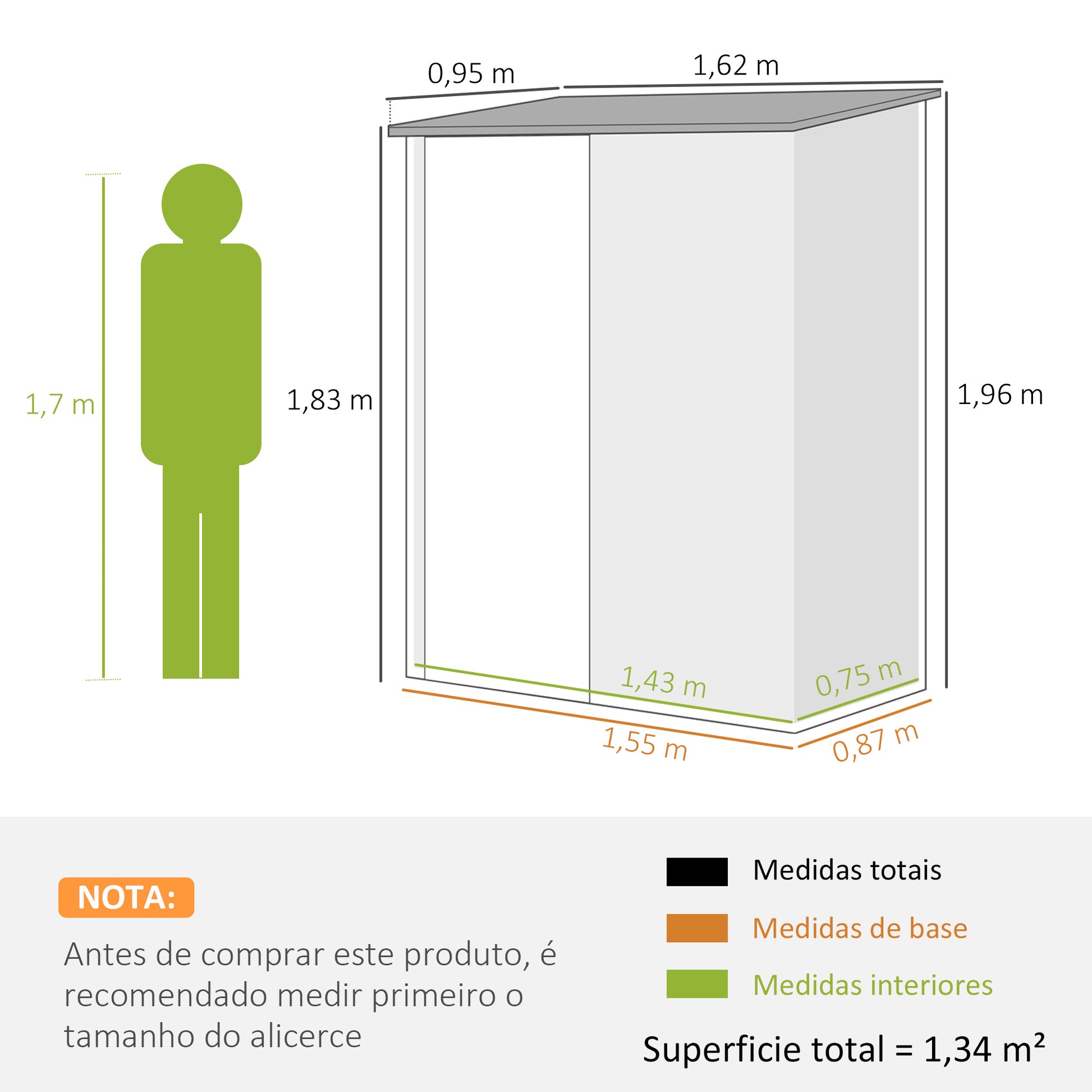 Este abrigo de jardim marrom é a solução perfeita para manter suas ferramentas e equipamentos de jardim seguros e organizados. Com medidas de 161.5x94.5x196cm, este abrigo de exterior em aço galvanizado oferece resistência às intempéries e à ferrugem, garantindo durabilidade.