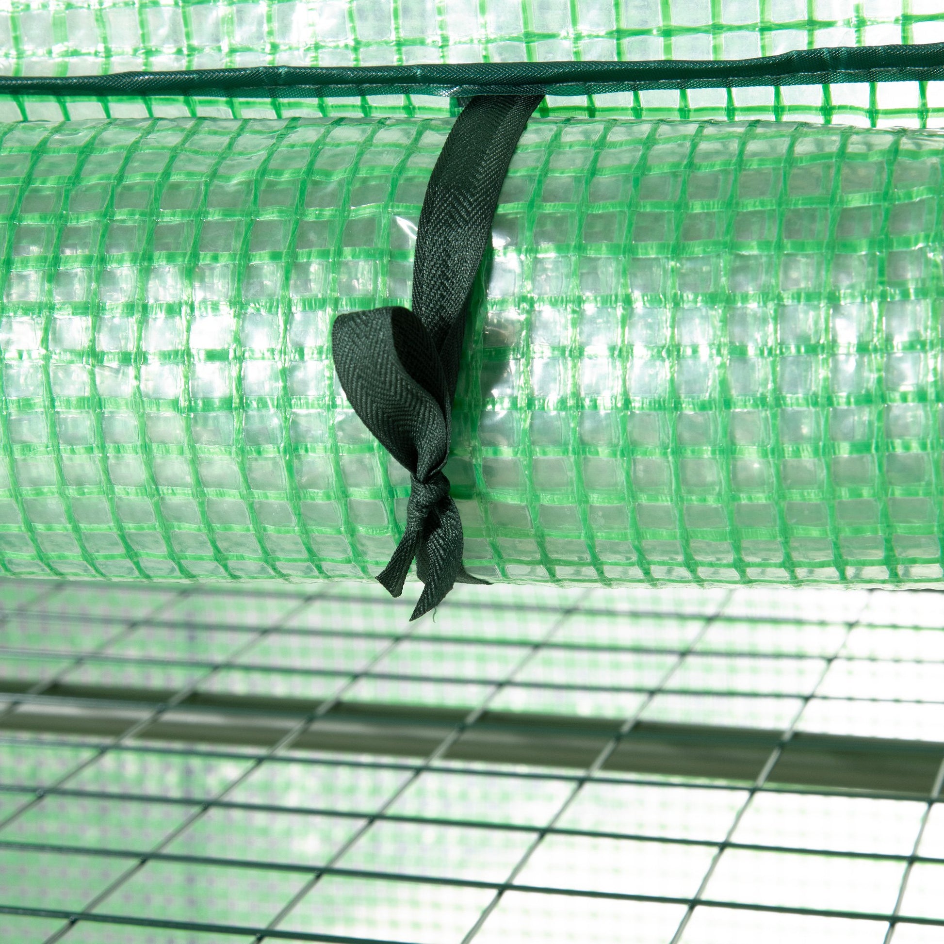 Proteja suas plantas do frio e dos pássaros com esta estufa de jardim verde de tamanho compacto, ideal para cultivo de plantas e flores. A porta enrolável com zíper facilita o acesso e a ventilação, enquanto as 4 prateleiras de metal proporcionam espaço organizado para seus vasos crescerem saudáveis.