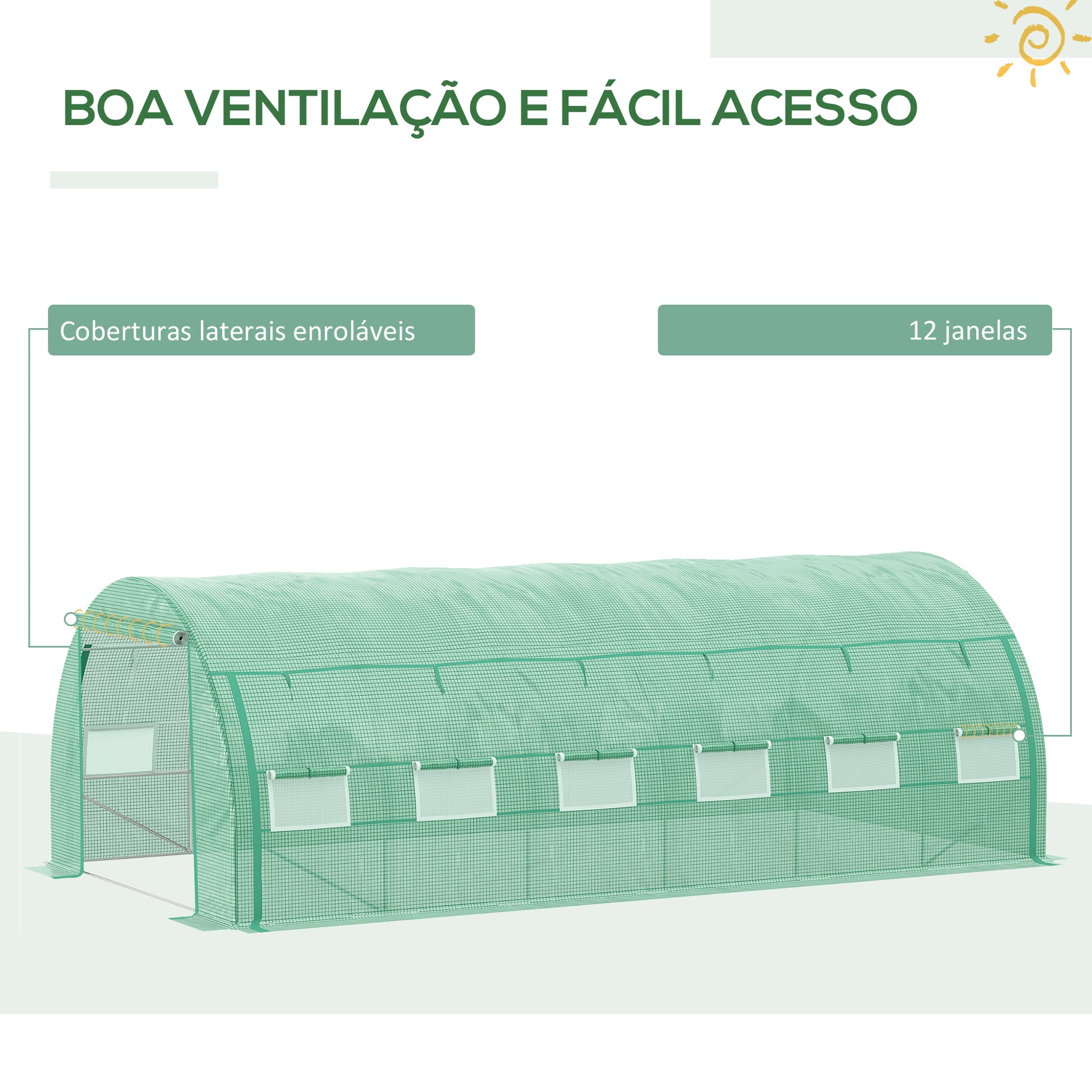 - Outras especificações: Porta dianteira de fácil acesso, janelas e laterais enroláveis para uma melhor ventilação.
