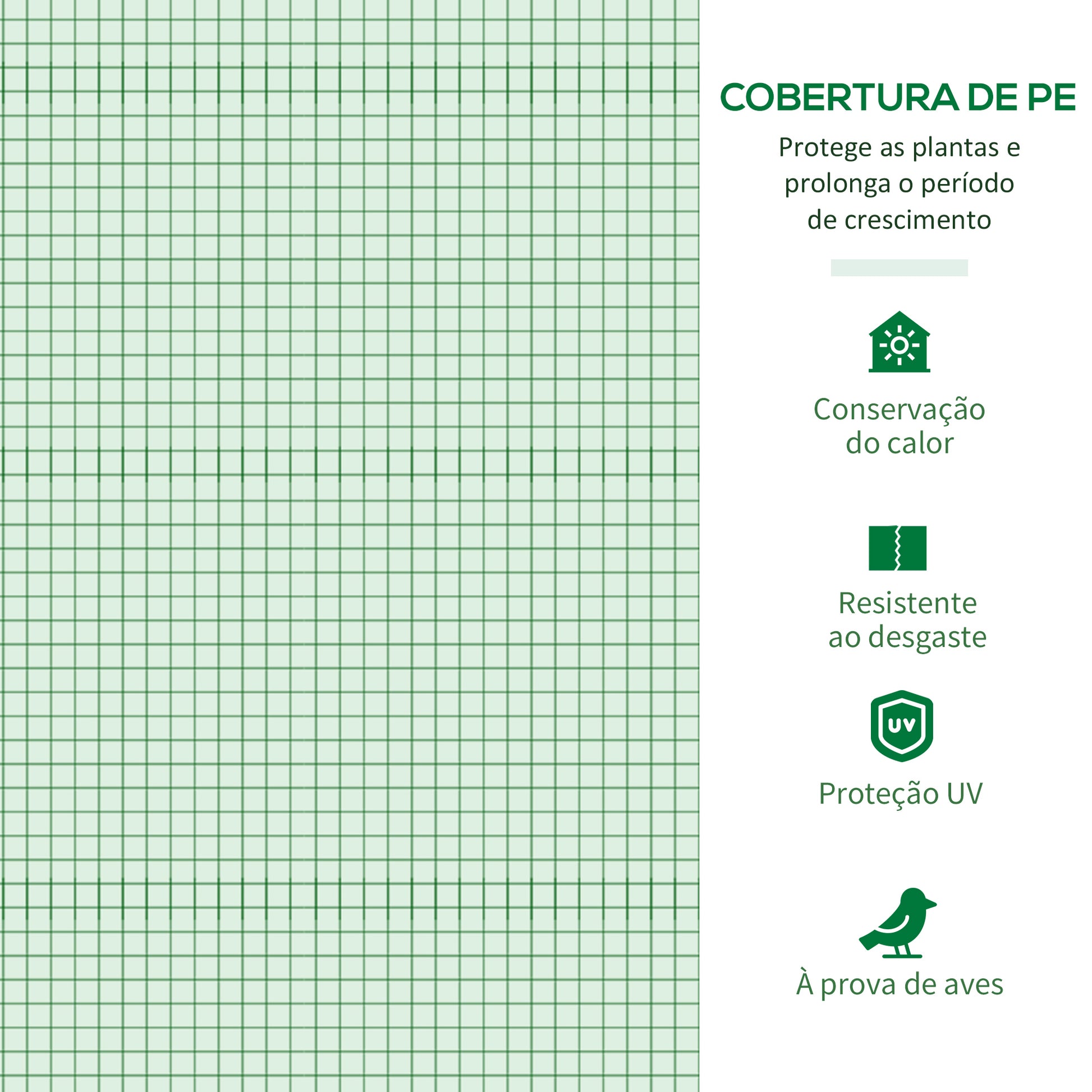 - Benefícios: Estrutura resistente, cobertura PE com proteção UV, porta enrolável e janela para ventilação.