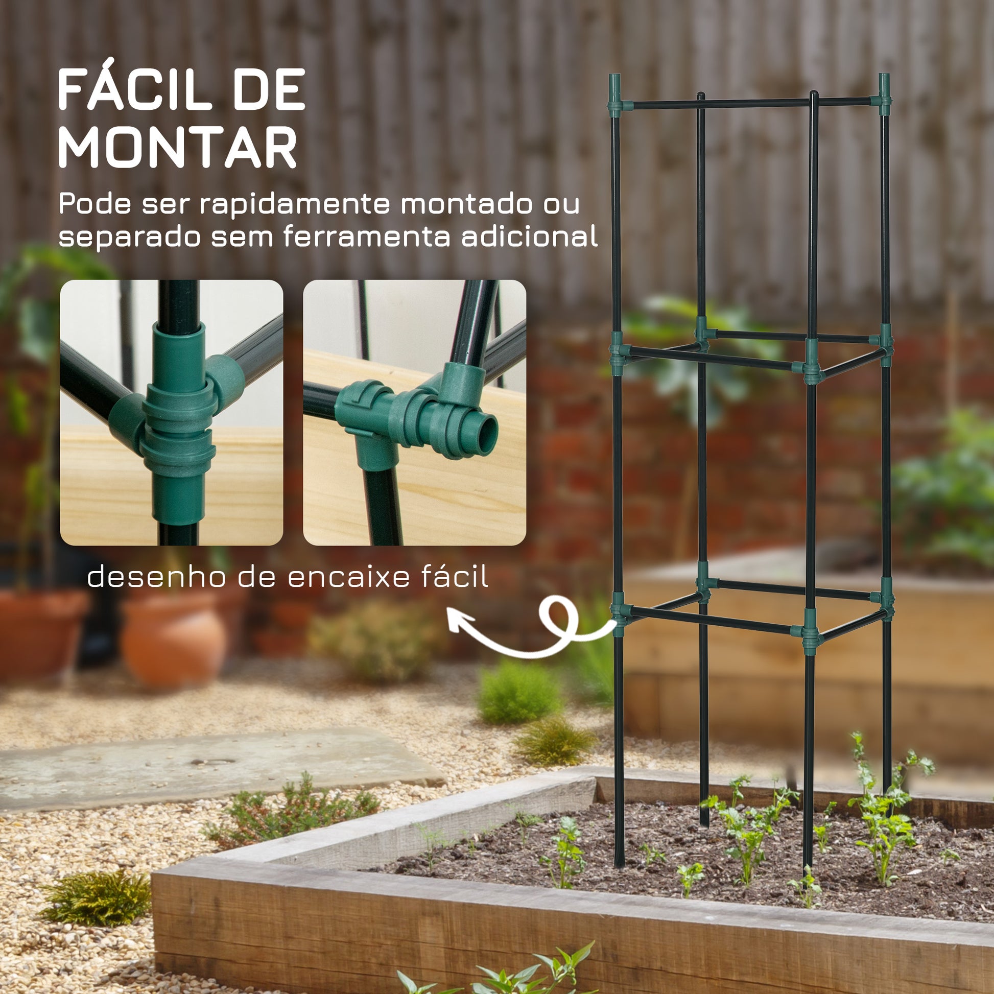 Este conjunto de suportes para plantas da Outsunny é a solução perfeita para garantir que suas plantas cresçam fortes e saudáveis. A estrutura de aço resistente proporciona estabilidade e suporte adequado para o crescimento vertical das plantas, sendo uma adição prática e duradoura para o seu jardim.