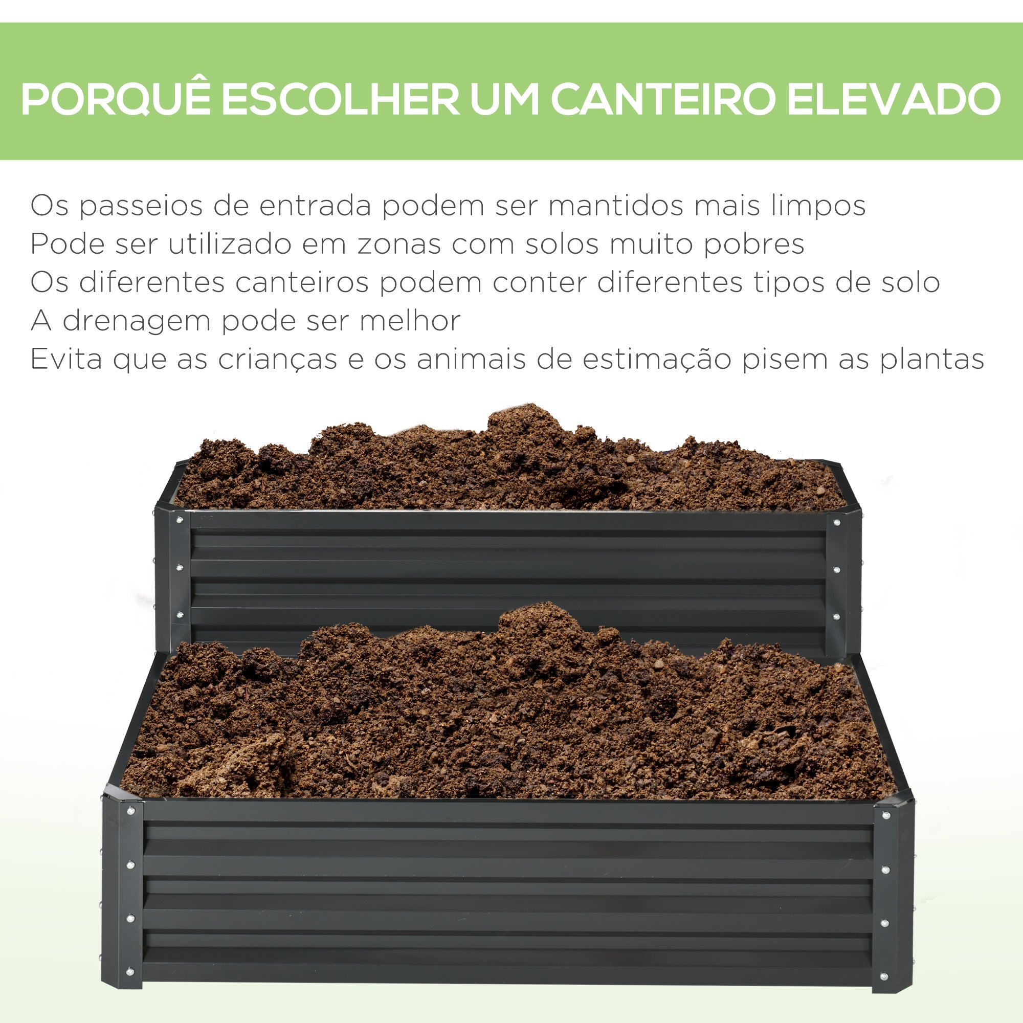 Desfrute de um espaço de cultivo elevado e organizado com esta caixa de plantio de 2 níveis em aço galvanizado, na cor cinza escuro. Ideal para plantar uma variedade de plantas, vegetais, ervas e flores.